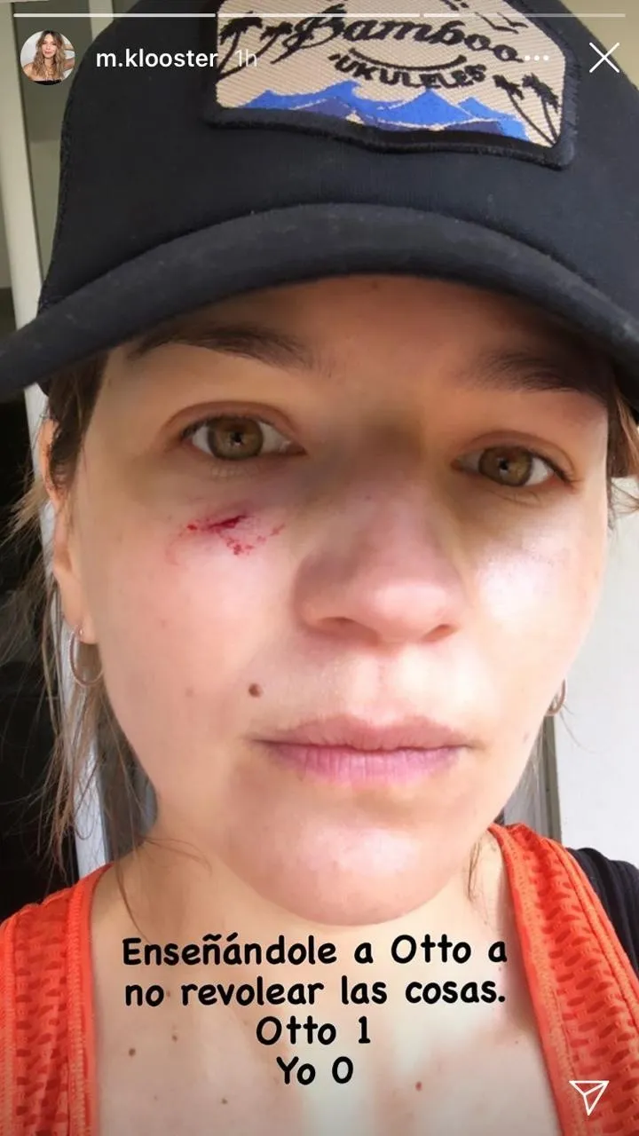 "Enseñándole a Otto a no revolear las cosas. Otto 1, yo 0", escribió con humor la artista junto a la imagen donde se veía en primer plano su rostro lastimado. Como era de esperarse, su posteo causó mucha preocupación entre sus fans porque se ve un pequeño corte, pero más allá del susto Marcela se encuentra bien.