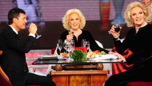 La producción de ShowMatch recreó la Mesa de los Almuerzoscon una escenografía idéntica y hasta invitó a la asistente Juanita, que le alcanzó a Mirtha mensajes jocosos. El primero, de su productor Carlos Rottemberg, propuso que Mirtha y Marcelo conduzcan un programa juntos. Luego se leyó uno de Amalia Granata solicitando ser invitada a la mesa con Tinelli. El tercero fue de Benjamín Vicuña, esposo de la modelo Pampita, pidiéndole al hombre de Bolívar que no vuelvan los cortes de pollera.