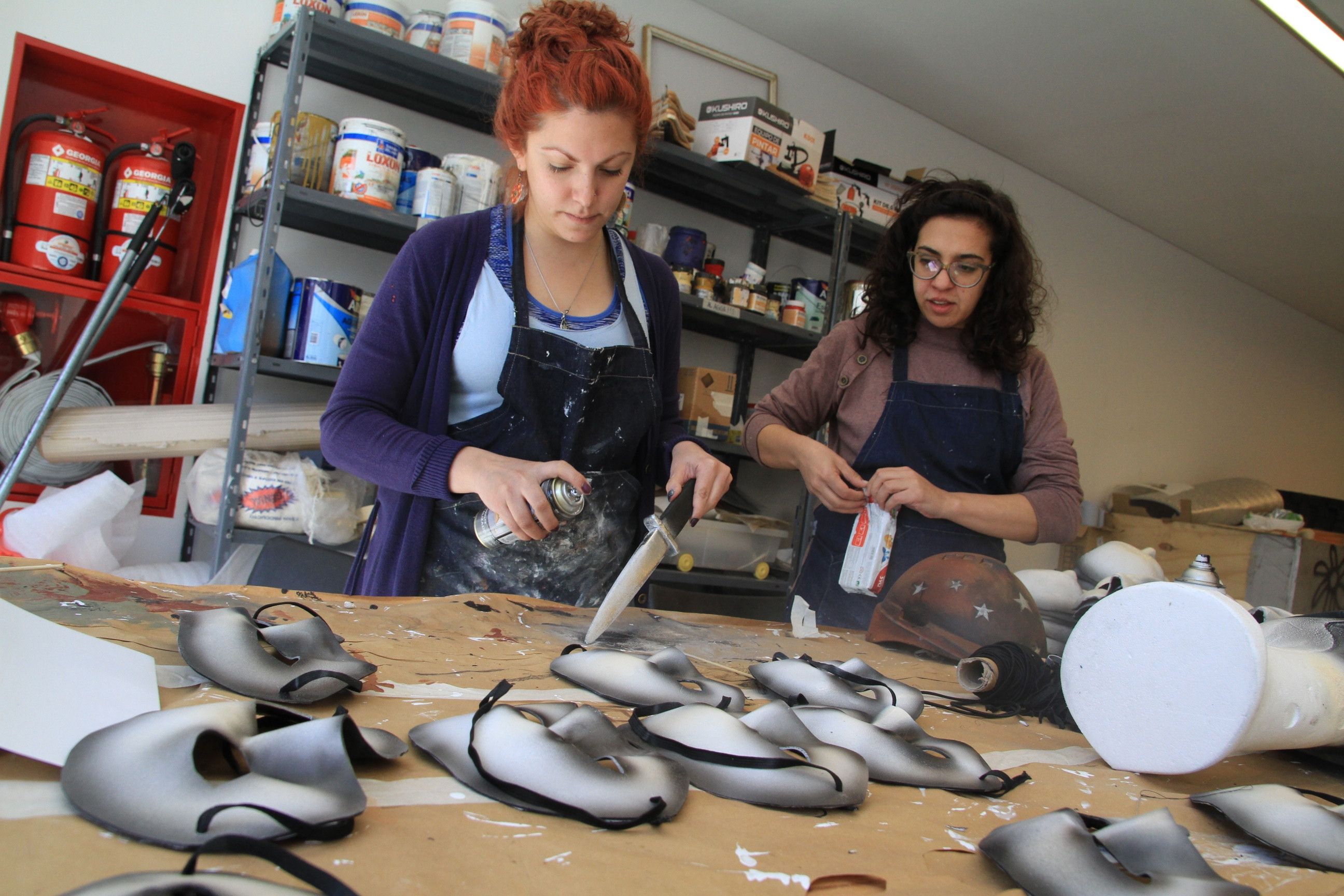 Unas 20 personas, entre carpinteros, herreros y realizadores de utilería y pintura; son las que llevan a cabo el trabajo, que incluye hasta una estructura para el "vuelo" de los saltimbanquis. De éstas, un grupo de jóvenes especialistas se dedican a dar el toque de "envejecido" a mesas y sillas, y de elaborar otros accesorios que portarán los personajes. Cecilia Verón y María de los Ángeles Carbajo, son integrantes del grupo que conforman con Jorge Moreno y Federico Peralta, a cargo de la realización de utilería y de la estética de la escenografía. Ellas sostuvieron que, como primer punto, recibieron una visión de qué necesitaba y el período histórico en el que está contextualizada, para "imitar" los componentes, en este caso, con carácter de "ensueño".