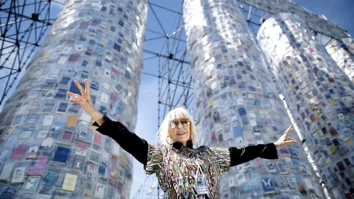 “El Big Ben derribado con libros políticos” (Big Ben Lying Down with Political Books) es el título de este flamante encargo que realizaron desde el prestigioso festival a la reina argentina del arte pop y participativo, y que se suma a su serie “La caída de los mitos universales”, como el Obelisco de pan dulce, el Partenón de libros prohibidos o el Carlos Gardel de fuego.