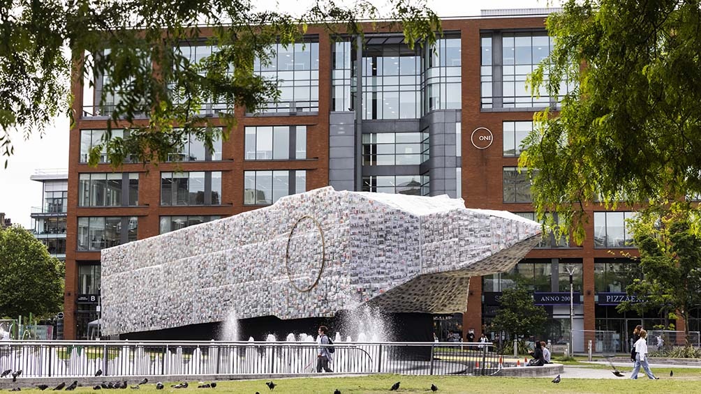 “Todos los sistemas antiguos están desbordados y los nuevos aún están naciendo. Queríamos encargar una obra pública a gran escala que pudiera hablar de este momento precario. Marta propuso dar un nuevo hogar al reloj más famoso del mundo y al símbolo político más reconocible del Reino Unido, que además invita a la gente a crear un monumento vivo que culmina en el momento mágico en que se desmonta, se regalan los libros y se comparten nuevas ideas”, dijo la curadora del festival Phoebe Greenwood.