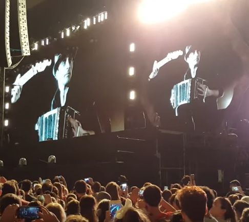 “Lo escribieron especialmente para estos shows en Argentina y en agradecimiento al público. Lo ensayamos en el estadio y también lo grabamos. Fueron los últimos dos shows de su gira de once meses”, agregó el bandoneonista, quien contó que llegó a ese escenario a través de “un amigo en común”.