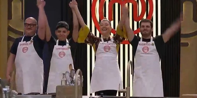 Con los tres participantes en el frente, los chefs anunciaron que quien debía abandonar la cocina de Masterchef era Antonio. “Ya está. Ya terminó esto para mí. Yo ya estoy contento, me voy con los míos a casa. Y esto recién comienza”, dijo el salteño en el backstage. En tanto, Rodrigo y Estefanía se sumaron a Rodolfo y estarán en la semifinal, por lo cual pudieron volver a sus islas de trabajo.
