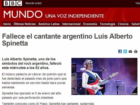 La edición en castellano de la BBC inglesa, por su parte, explica que "el músico padecía un cáncer de pulmón que le fue detectado el pasado mes de junio, pero que había mantenido en secreto hasta hace pocas semanas".