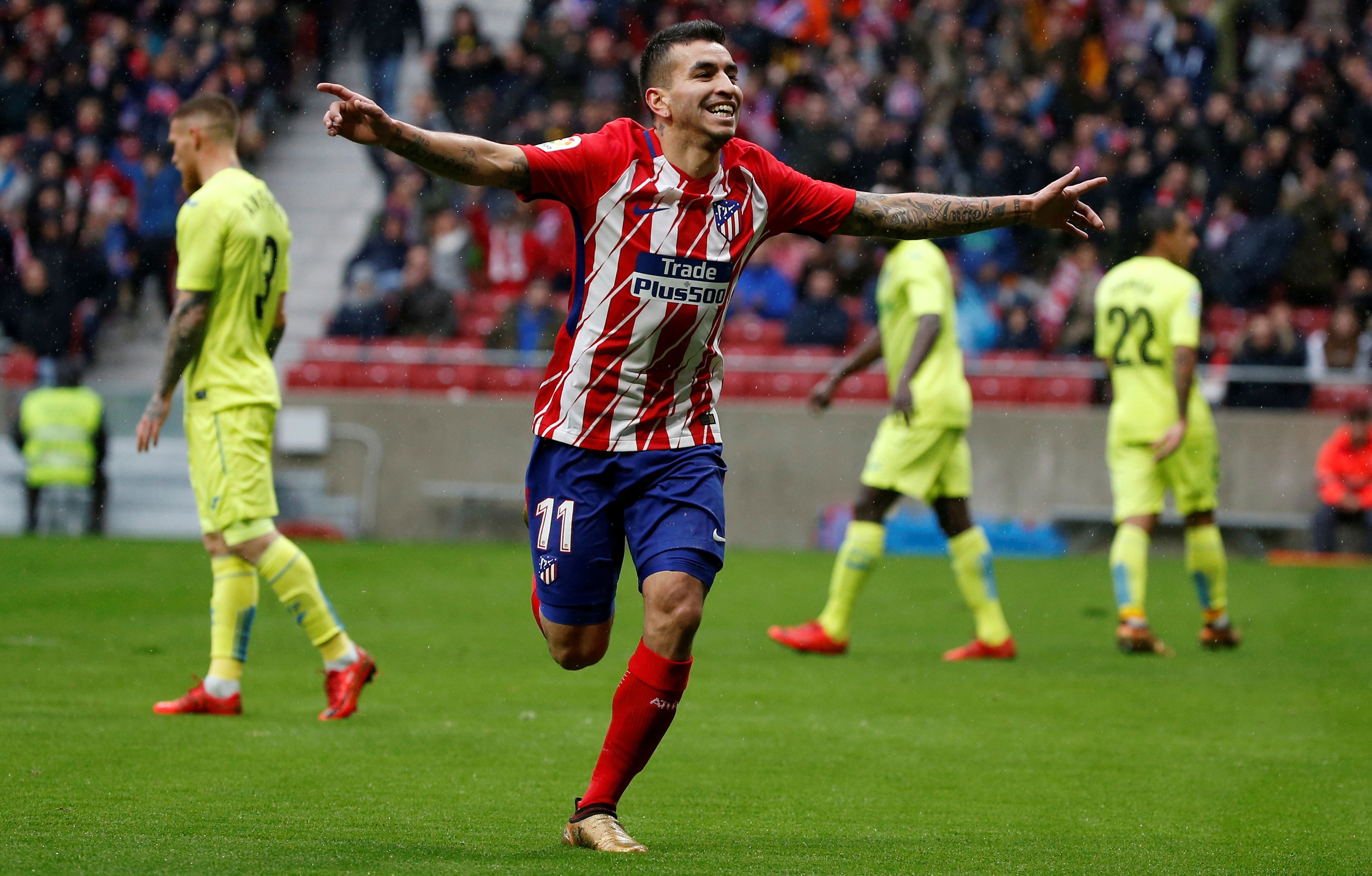 El delantero argentino Ángel Correa (en la foto, festejando), ex San Lorenzo, marcó ayer un gol en el triunfo de Atlético de Madrid como local ante Getafe por 2 a 0, en cotejo por la 18va fecha de la Liga española de fútbol, consolidándose en el segundo puesto detrás del Barcelona.