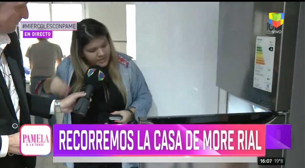 A Pamela le gustó la decoración y tras hablar de esas imágenes, le consultó a More si quería hacer un recorrido por la casa. "Bueno, dale", aceptó la joven mamá rápidamente. Y aclaró: "Pero por acá abaja nada más, porque tiene tres pisos y… ¡pobre el señor de la cámara!".