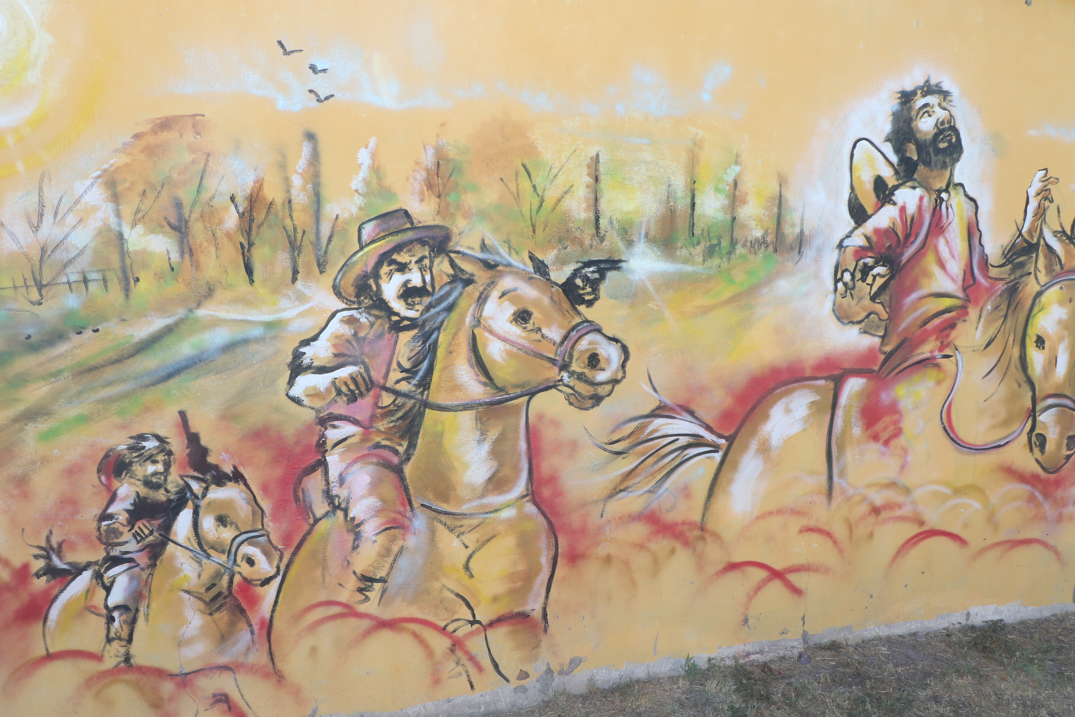 "Es una historia muy resumida, pero quisimos, con todo el respeto, poner parte de su vida en el mural, y para eso usamos una estética de escena de historieta o ilustración" aportó el también dibujante, que dijo que buscaron fotos antiguas pero sólo encontraron la pintura que está en la capilla del santuario y en base a esos rasgos crearon su propia versión del héroe rural, que según la información existente nació el 19 de marzo de 1805 y murió el 14 de febrero de 1858.