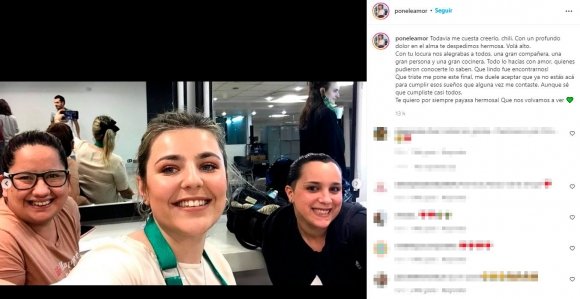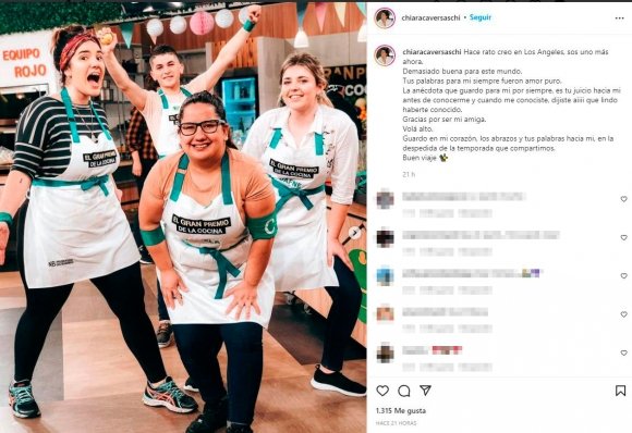 Justamente, Bárbara Castellano, coordinadora de producción de El gran premio de la cocina, fue una de las compañeras que la despidió en Instagram.