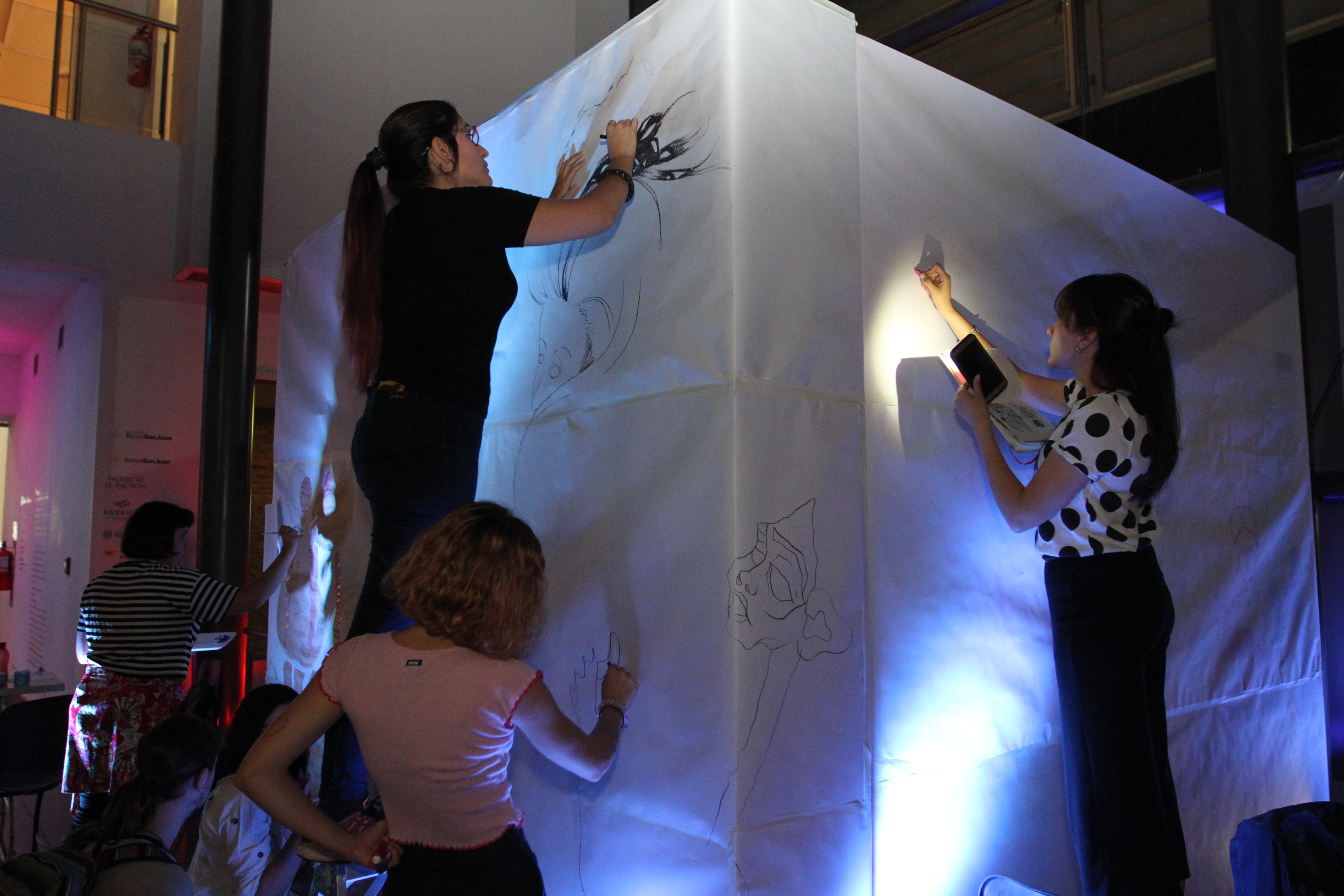 El Museo Provincial Franklin Rawson es escenario por tercera vez de "La noche del dibujo’. Por estas horas decenas de sanjuaninos disfrutan de dibujantes que realizan sus obras en vivo.
