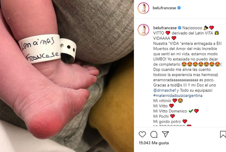 Este martes por la noche, Belén Francese se convirtió en mamá. Por medio de una tierna postal de los pies del chiquito, la actriz confirmó en su cuenta de Instagram que el parto fue un éxito y a su vez que reveló por primera vez el nombre de su hijo.