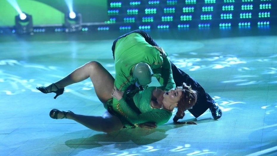 Nancy Pazos (47) y su bailarín, Cristian Ponce, protagonizaron un blooper al final de su coreografía al ritmo del rock, y la periodista se llevó un duro golpe en la espalda.