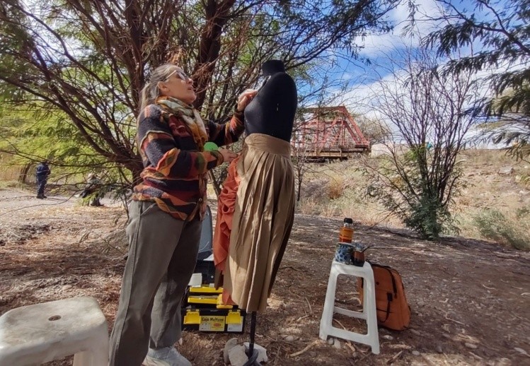 Lilia Raffo, creadora de indumentaria con cuero de cabrito, trasladó un maniquí al que comenzó a vestir con la paleta de colores del lugar y así se dejó atravesar por la experiencia.