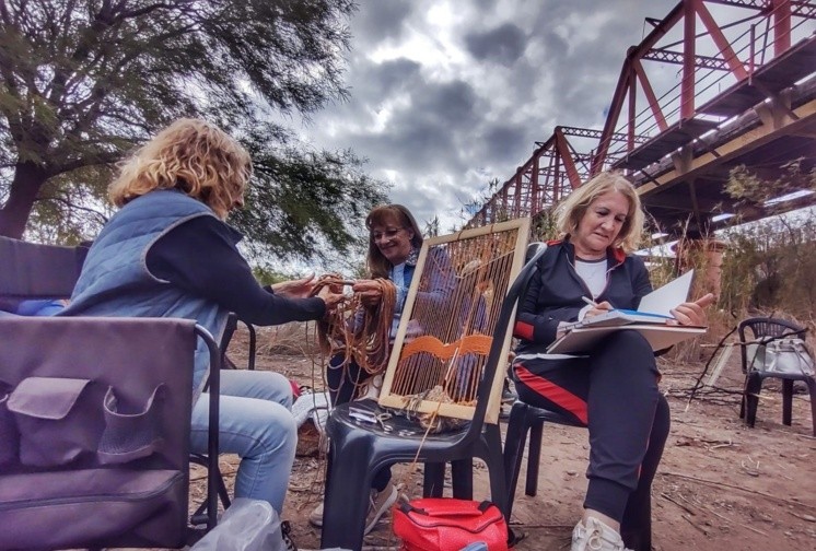 “Aquí siento que me conecto con la gente y la naturaleza, me parece un momento privilegiado” comentó a DIARIO DE CUYO Teresita Chiconi mientras creaba en su telar los arcos del puente de Alto de Sierra, sentada a metros de la base. La artista textil fue una de las participantes de “El arte, puente de unión” un encuentro multidisciplinario que se llevó a cabo ayer, organizado por la artista plástica Isabel Fernández.