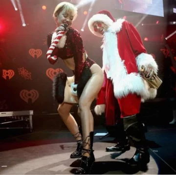 Estados Unidos, 10 de diciembre.- Miley Cyrus ahora le hizo un perreo a Papá Noel el pasado sábado en la gala de Navidad de la emisora Kiss FM de Los Ángeles.