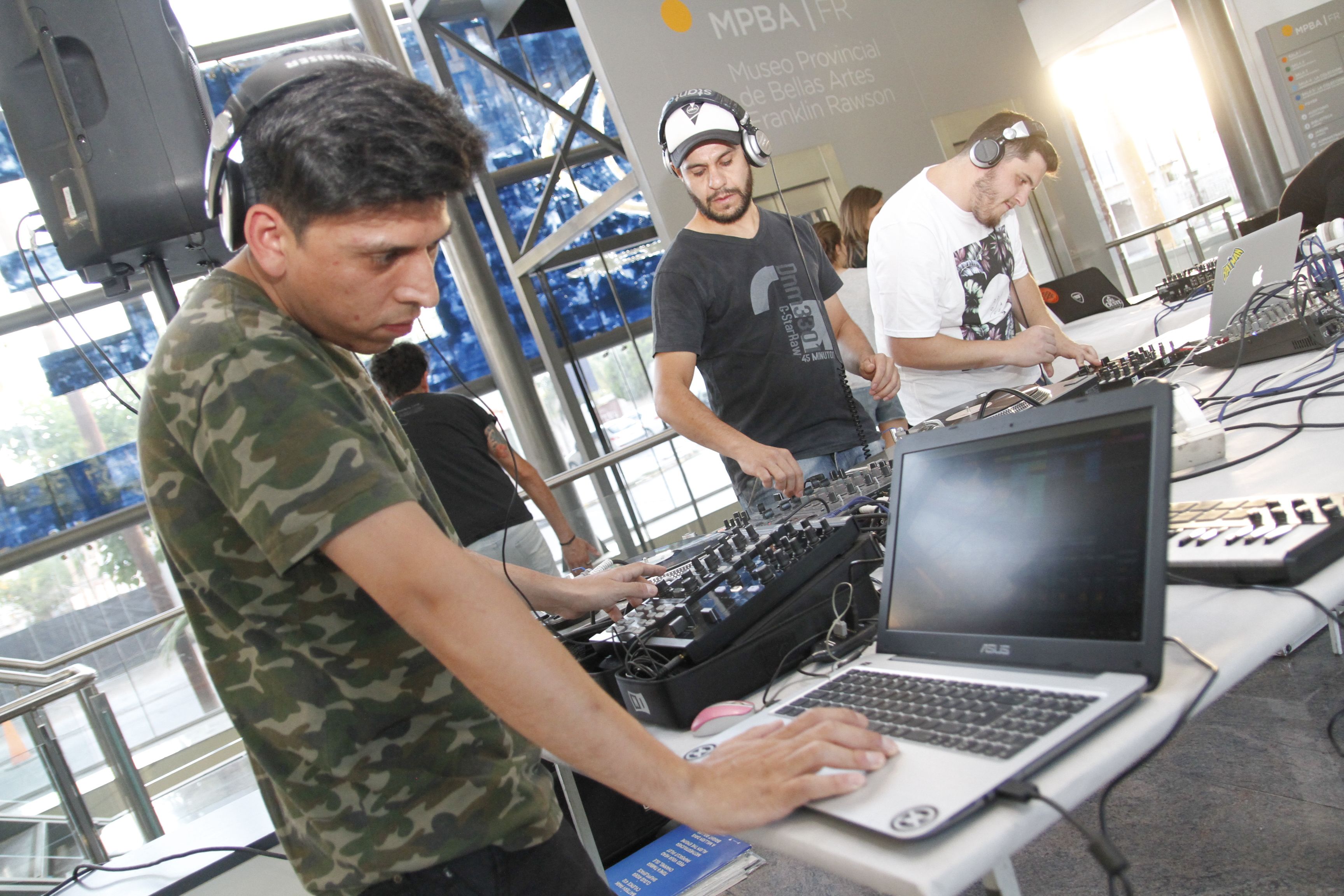En el primer piso, Vicky, del taller de Arte inclusivo, detallaba a quien quisiera escuchar cómo había realizado las obras que exponía. Al mismo tiempo, en el hall, la música electrónica emergía de la jam preparada por los alumnos del taller del DJ Renzo Nievas.