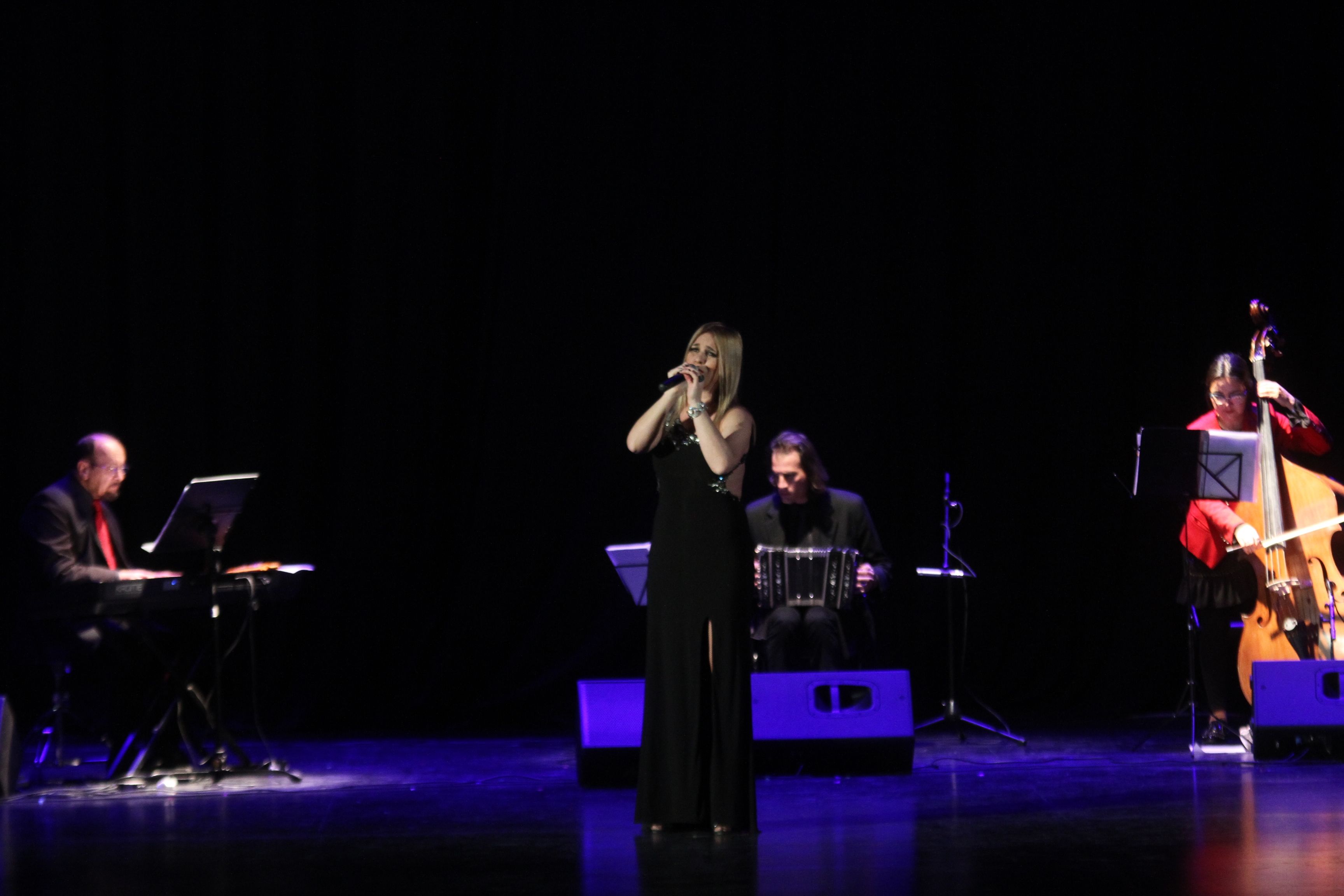 En el escenario, la artista hizo su aparición con Muñeca Brava, de Cadícamo y Visca, acompañada por el reconocido bandoneonista Esteban Calderón, la contrabajista Laura Vicentela y Orlando Tejada al piano, quienes la acompañaron en otro clásico como es Cuartito Azul, muy especial para ella, como lo hizo saber al público. "Este tango de Mores tiene mucho que ver con mi historia y una persona muy especial en mi vida como es mi abuelo, él le cantaba este tango a mi abuela’, relató Carolina a la platea.