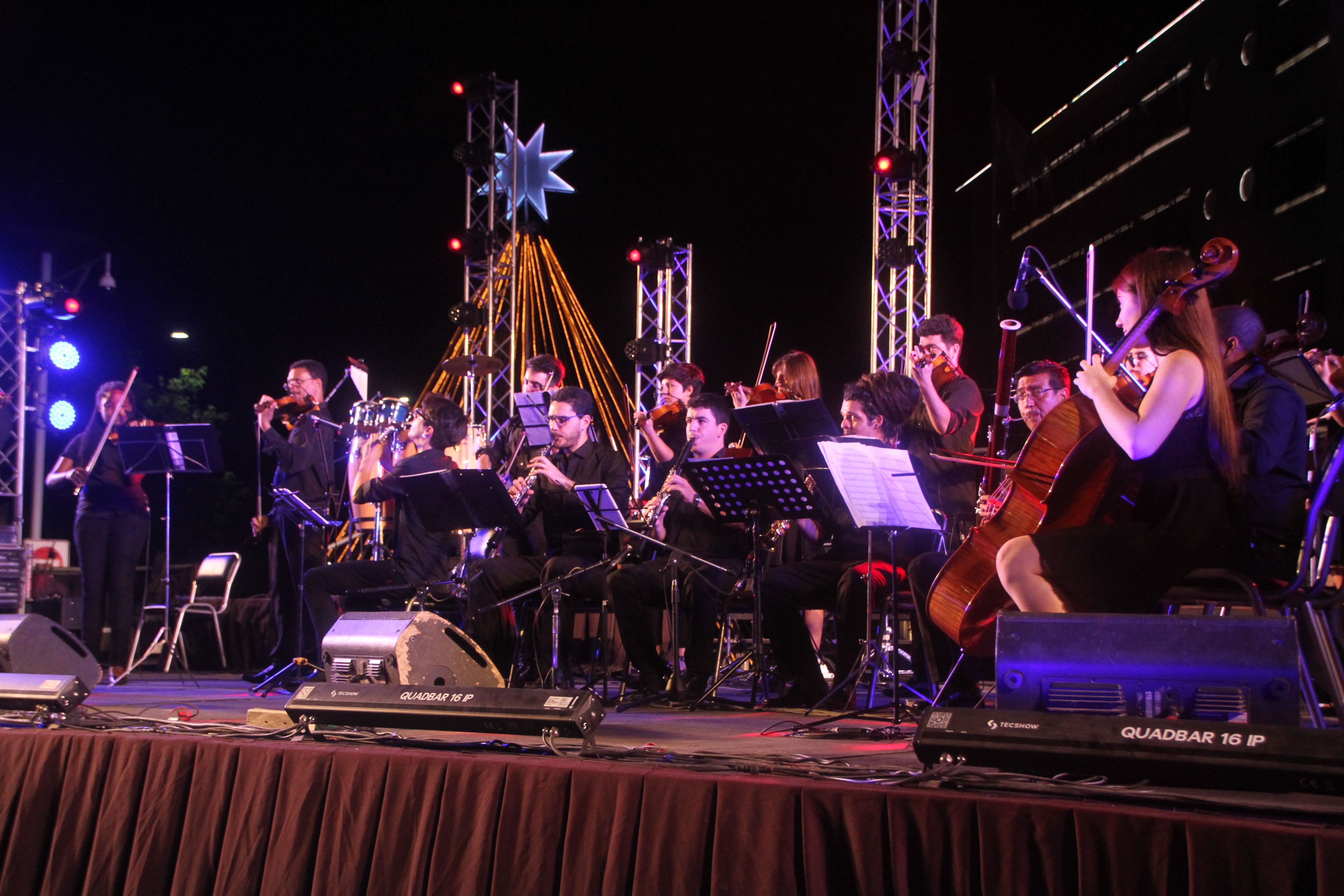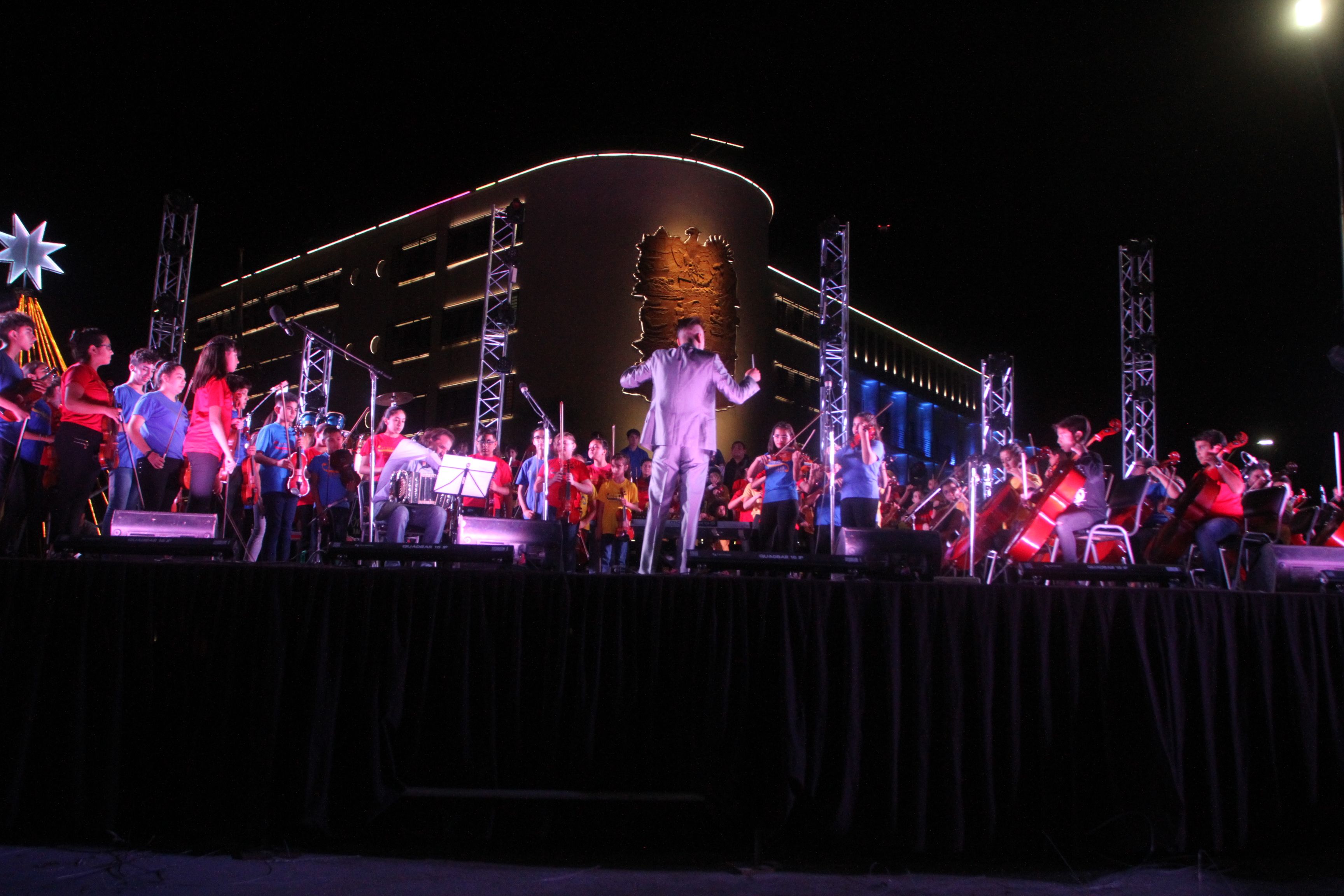 Una vez más, el espectáculo Navidad con Todos de la Legislatura Provincial logró reunir a miles de espectadores con el propósito, no sólo de iniciar el ciclo de las fiestas de diciembre y motivar el espíritu navideño para estas fechas, sino también, la de ser el móvil para aquellos que más necesitan (se recaudaron numerosos elementos para las Escuelas Albergue Manuel Estrada y ARID); y por supuesto, que el público disfrute de un gran show para escuchar y sentir números musicales de gran calidad. La velada tuvo el clima óptimo, muchas familias se acercaron a los alrededores del Parque de Mayo y Plaza España, que si bien podían ingresar gratuitamente al vallado donde estaban las sillas para apreciar de cerca el concierto (localizadas en el cruce de avenida Libertador y calle Las Heras), prefirió ubicarse en el césped, con la clásica conservadora con sándwiches, las reposeras y banquitos, o las colchas para acostarse y mirarlo desde una perspectiva inmejorable. Las luces que decoraban todo el espacio fueron acertadas y brindaron una escena muy atractiva a la vista. Pese a estar programado arrancar a las 21.30, hubo un retraso importante y recién a las 22.20 la Orquesta Escuela marcaba el comienzo de todo el show y para empezar con el pie derecho, la agrupación dirigida por Hildemaro Villarreal propuso el clásico villancico "Campanas de Navidad" y la famosa Danza Rusa de Pyotr Ilyich Tchaikovsky, una de las conocidas piezas del Cascanueces. Los chicos brindaron, además, una versión de Libertango, con la presencia de Esteban Calderón en el bandoneón y que la repitieron al finalizar su actuación. Y como no podía ser menos, la orquesta de más de 100 integrantes interpretó la popular canción de Gladys "la Bomba" Tucumana "Pollera amarilla", que hizo bailar a todos en el escenario y también en las filas de los espectadores.