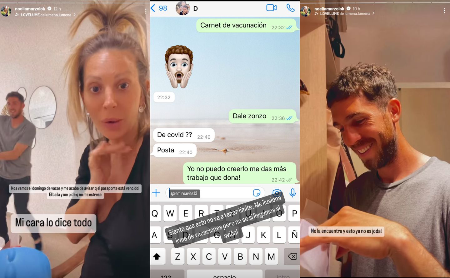 “¿Ustedes saben la cantidad de cosas que hice hoy, trabajando desde mi celular?”, comenzó la artista en una historia de Instagram. “Yo llego a casa, y él me acaba de informar que tiene el pasaporte vencido”, expresó Noelia con euforia y desesperación ya que su viaje será este domingo.
