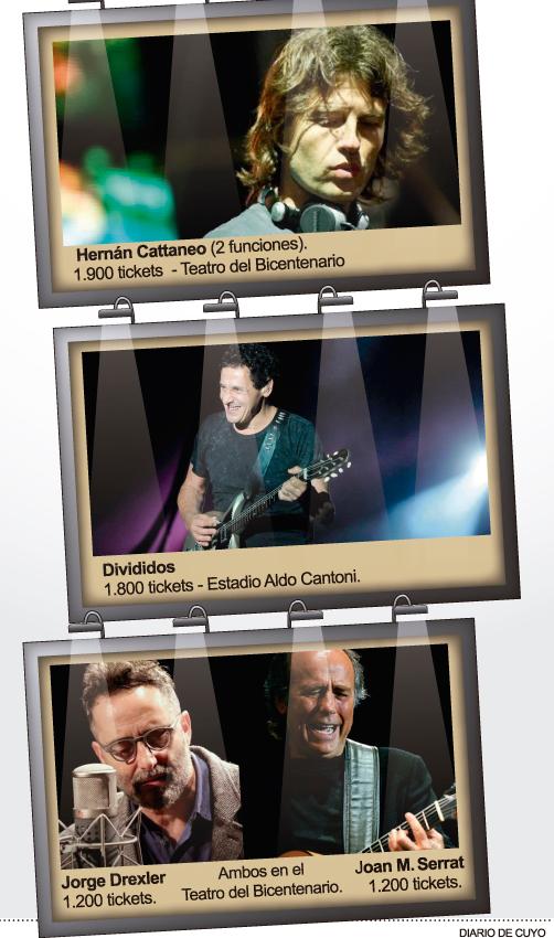 Sobre las preferencias, el productor comentó su sorpresa por la buena respuesta que tuvo Alejandro Lerner, con dos funciones agotadas; y resaltó haber concretado las presentaciones de Jorge Drexler e Ismael Serrano "en un momento de crisis". "Fue una apuesta grande. También tuvimos a Lali Espósito, que no nos fue bien, y cancelamos Chano y Miguel Mateos", acotó.