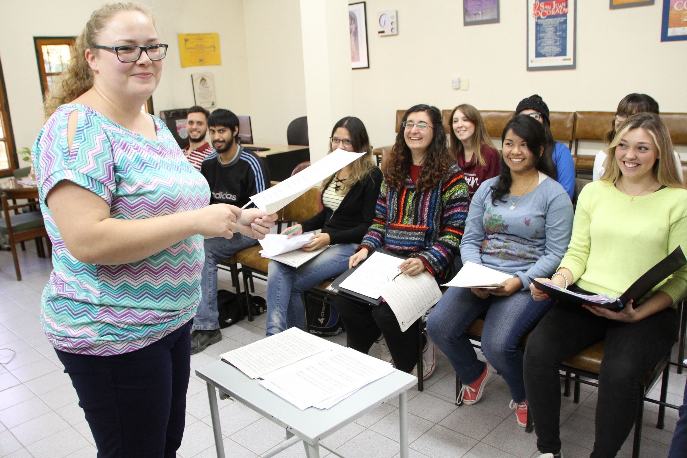 Con los ensayos en marcha y trazando perspectivas para los futuros rumbos de la agrupación, la flamante directora habló con DIARIO DE CUYO: "Llevamos semanas de ensayos intensos desde que asumí. Nos estamos conociendo, es una etapa agradable, aunque siguen extrañando a su anterior directora, pero hay muchas expectativas por lo que estamos haciendo", dijo la profesional, que en cuanto al plan de trabajo precisó que si bien el coro debe servir para la propia universidad y sus compromisos institucionales, "también está inserto en una sociedad, así que queremos abrirnos a la comunidad y ver qué posibilidades hay para trabajar junto a otros coros de universidades católicas del país". Y sobre el repertorio a abordar, explicó que "nuestro elenco es un gran instrumento musical vocal y en base a cómo suenan estas voces, sabremos qué repertorio queda bien para interpretar. Tampoco puedo obligar al elenco a cantar algo que no le guste. Creemos que podemos llevar tranquilamente por igual repertorio académico y popular; pero también nuestro deber es enseñar a la sociedad que las obras académicas no son aburridas.