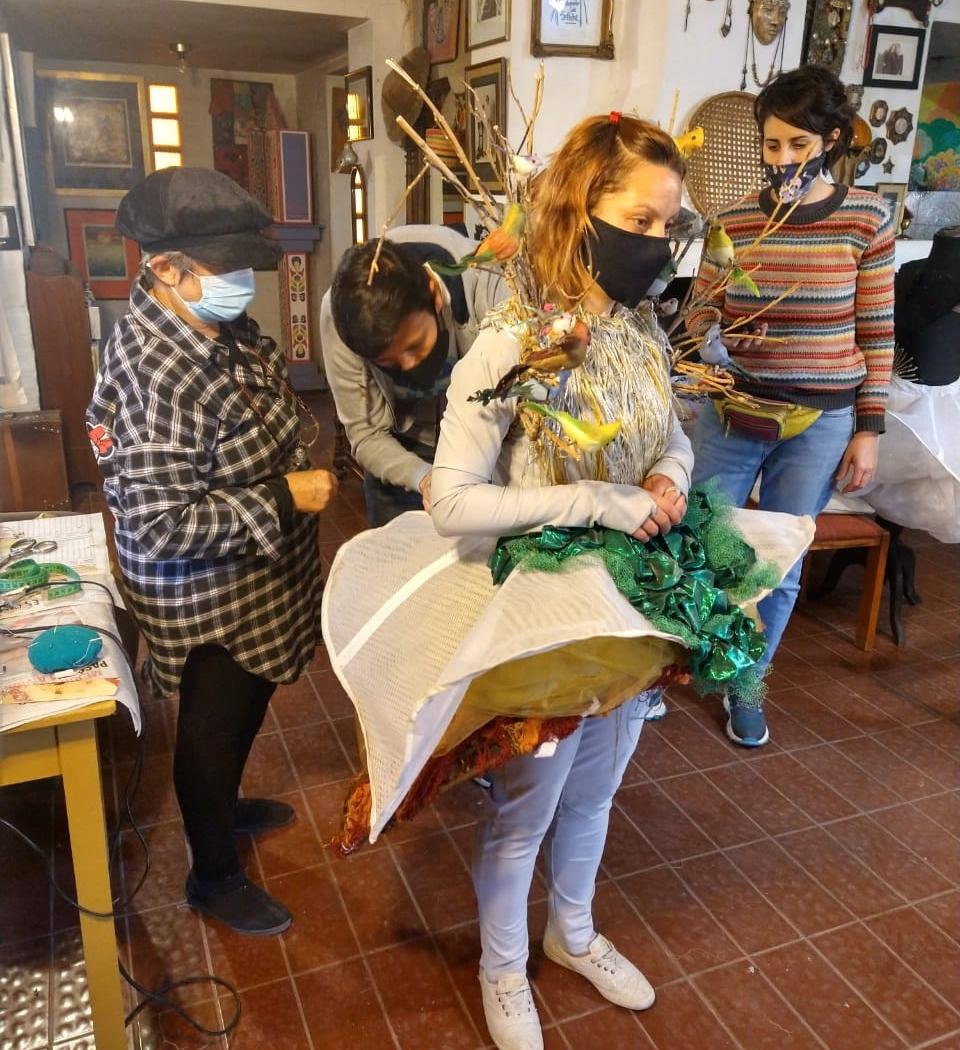 "No fue una tarea fácil. A la vez que Tito Oliva iba haciendo las piezas musicales, los artistas plásticos, videastas, fotógrafos y la coreógrafa y directora escénica íbamos trabajando cada uno en su casa. La producción fue realmente transdisciplinaria" contó a DIARIO DE CUYO la artista plástica Silvina Martínez, que tuvo a su cargo el concepto escénico (vestuario y escenografía) junto a Isabel Rostagno y la colaboración de Emanuel Díaz Ruiz.