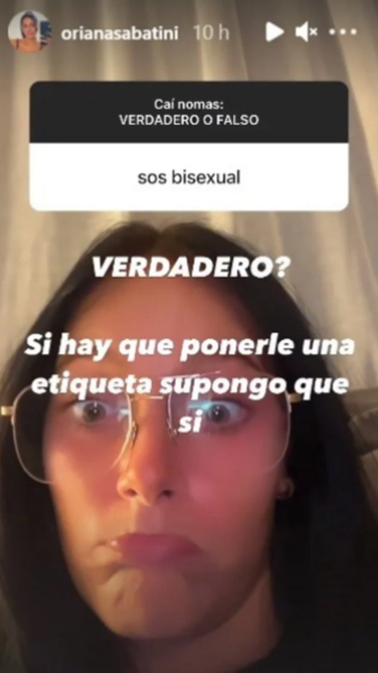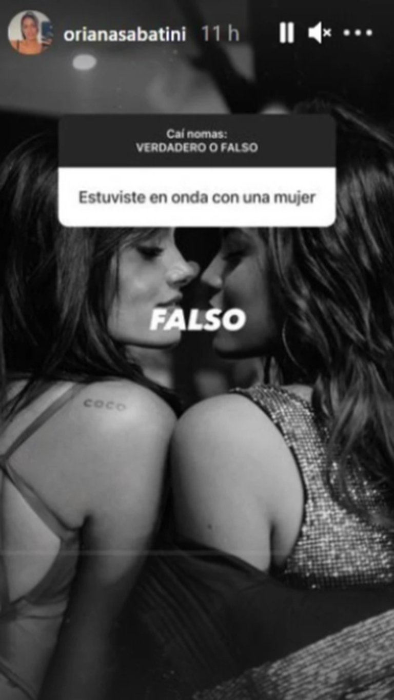 Para interactuar con sus más de cinco millones de seguidores en Instagram, Oriana Sabatini decidió hacer un juego de preguntas del estilo “verdadero o falso”, en el que no se privó de responder ninguna. Entre las variadas consultas de sus fans, la cantante fue indagada sobre su sexualidad: “¿sos bisexual?”, a lo que ella contestó: “VERDADERO? Si hay que ponerle una etiqueta, supongo que sí”. En ese sentido, la hija de Catherine Fulop siempre había declarado estar en contra de las etiquetas y de “encasillar” a la gente dentro de alguna categoría. Sin embargo, el tema no quedó terminado ahí y ante la consulta sobre si alguna vez “estuvo en onda con una mujer”, fue tajante: “FALSO”, escribió.