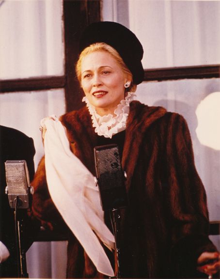 La actriz norteamericana (Pequeño gran hombre y Chinatown, entre otras películas), fue la primera en encarnarla. Lo hizo para el telefilm por entregas Evita: la mujer detrás del mito, de Marvin Chomsky. Fue una producción no exenta de polémica, por la mirada lejana hacia la historia argentina, donde -además- no deja bien parada a la pareja protagónica.