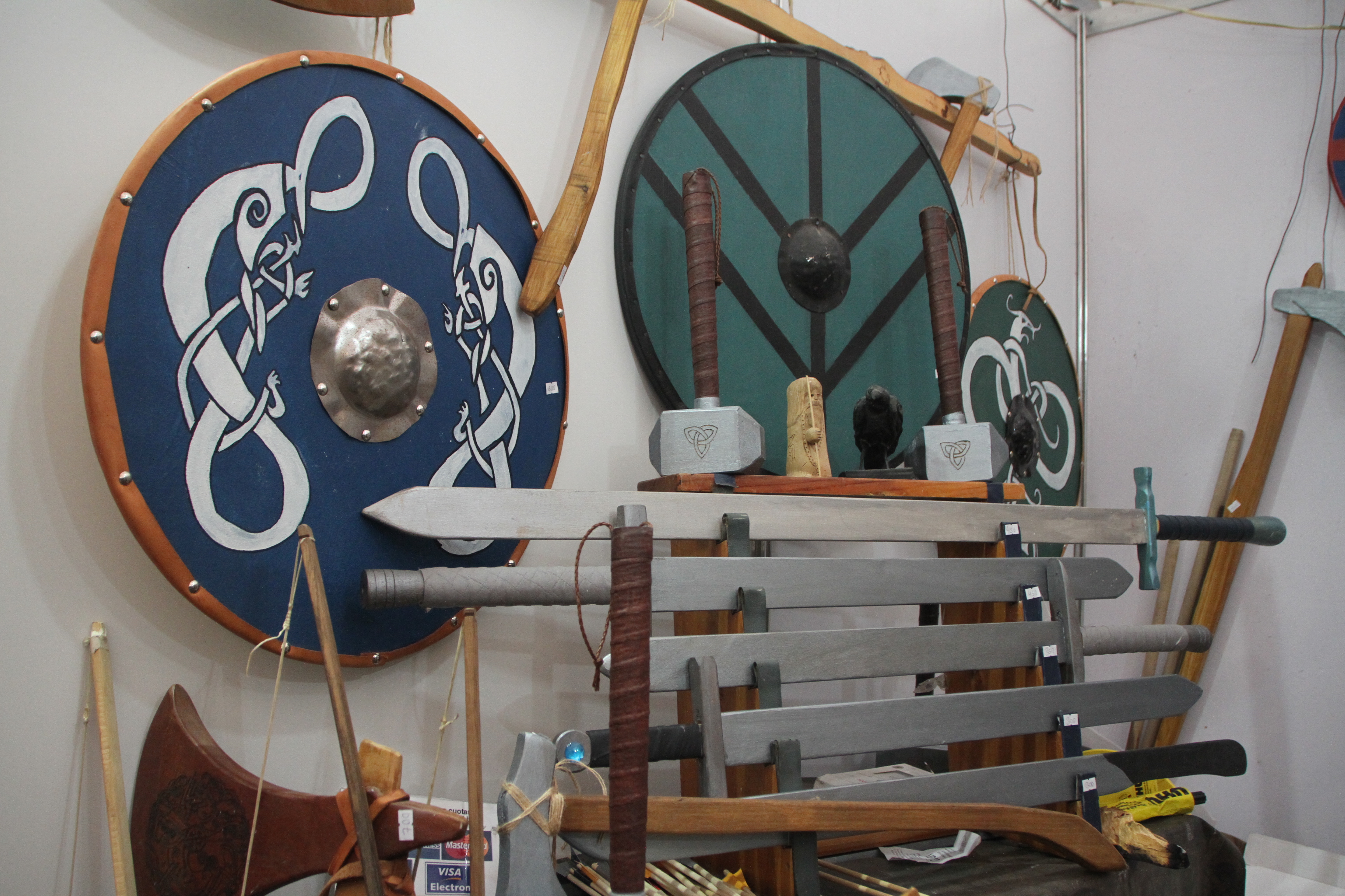 Ramiro Viniegra tiene Odín Artesanía Medieval. Presenta armas de diferentes civilizaciones en madera, ideal para los fans de la historia y los cosplays. Mezcla de historia, juego y aprendizaje, hay motivos vinkingos, nórdicos, de cruzadas, incas y mayas. Hay espadas desde $80, $140 y $160; sables de piratas, espadas mandobles de caballeros desde $200; escudos de $140 a $160; mientras que otros escudos más grandes y con símbolos típicos van de $180 a $600; de mayor tamaño y detalles hasta $750. Todo pintado y elaborado manualmente, con herramientas especiales. También runas y talismanes.
