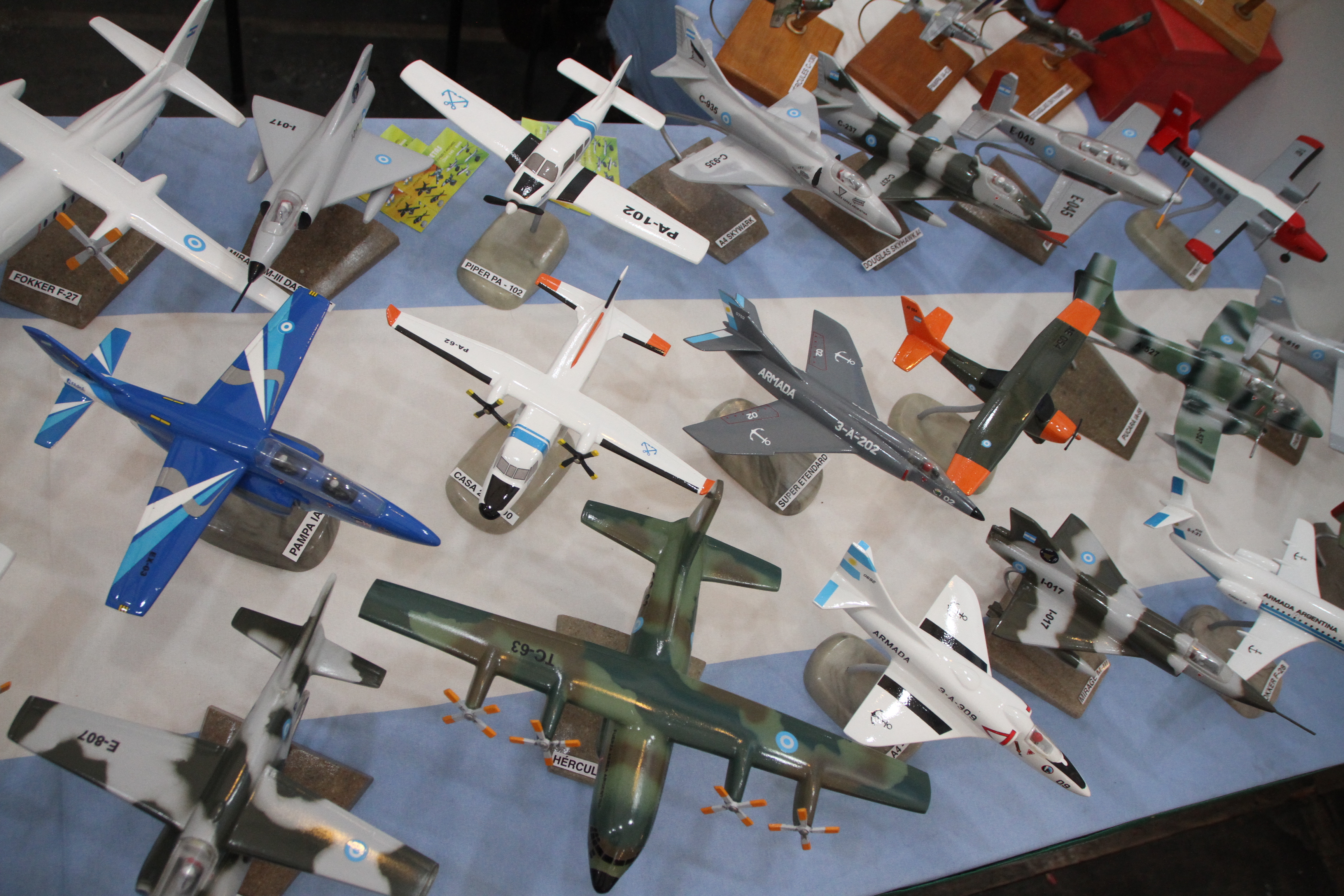 Néstor Tavalla, artesano local, ofrece sus aviones de bandera nacional, civiles y militares en miniatura. Realizados con resina, plomo y aluminio, hay réplicas de alta calidad y terminación. También helicópteros ($1.000) naves de la Fuerza Área, y la Armada Argentina. Aviones de combate que participaron en misiones de paz a Haití, Guerra de Malvinas, vuelos comerciales y de rescate. El clásico Boeing 737, Hércules C130, Mirage Interceptor, Pucará a hélice, Pampa IA 63, Focker F27 cuestan entre $1.300 y $1.400; porta-lapiceros a $850.