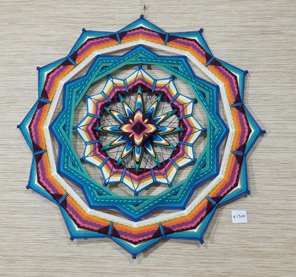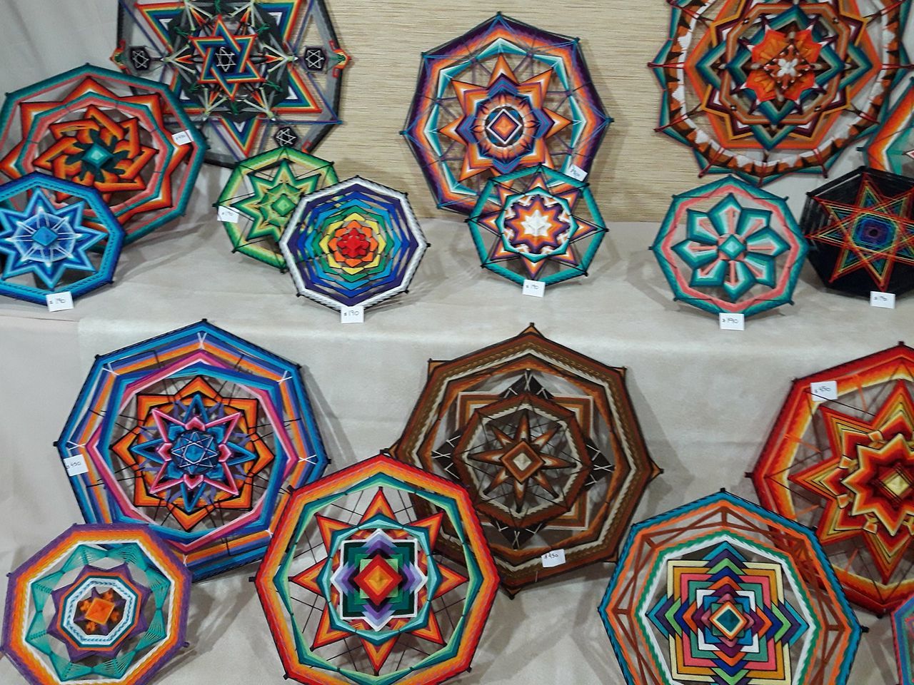 Mariela Arrascaete llega de Córdoba con sus llamativas mandalas confeccionadas en lanas, con diseños coloridos y novedosos que atrapan a primera vista. Realizadas a mano con técnicas similares a las usadas en un telar, no existen patrones, por lo que cada pieza resulta diferente. La técnica está inspirada en los "Ojos de dios" y parte de un rombo central, que en algunos casos, muta a otras formas. Las más pequeñas cuestan $100 y llegan a $1.500.