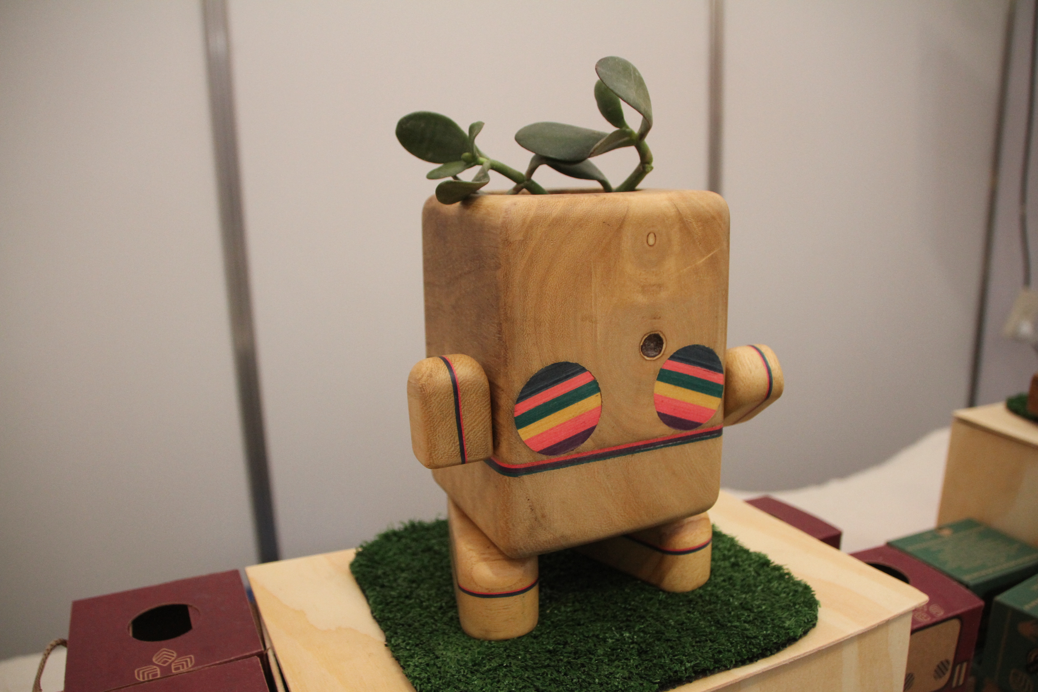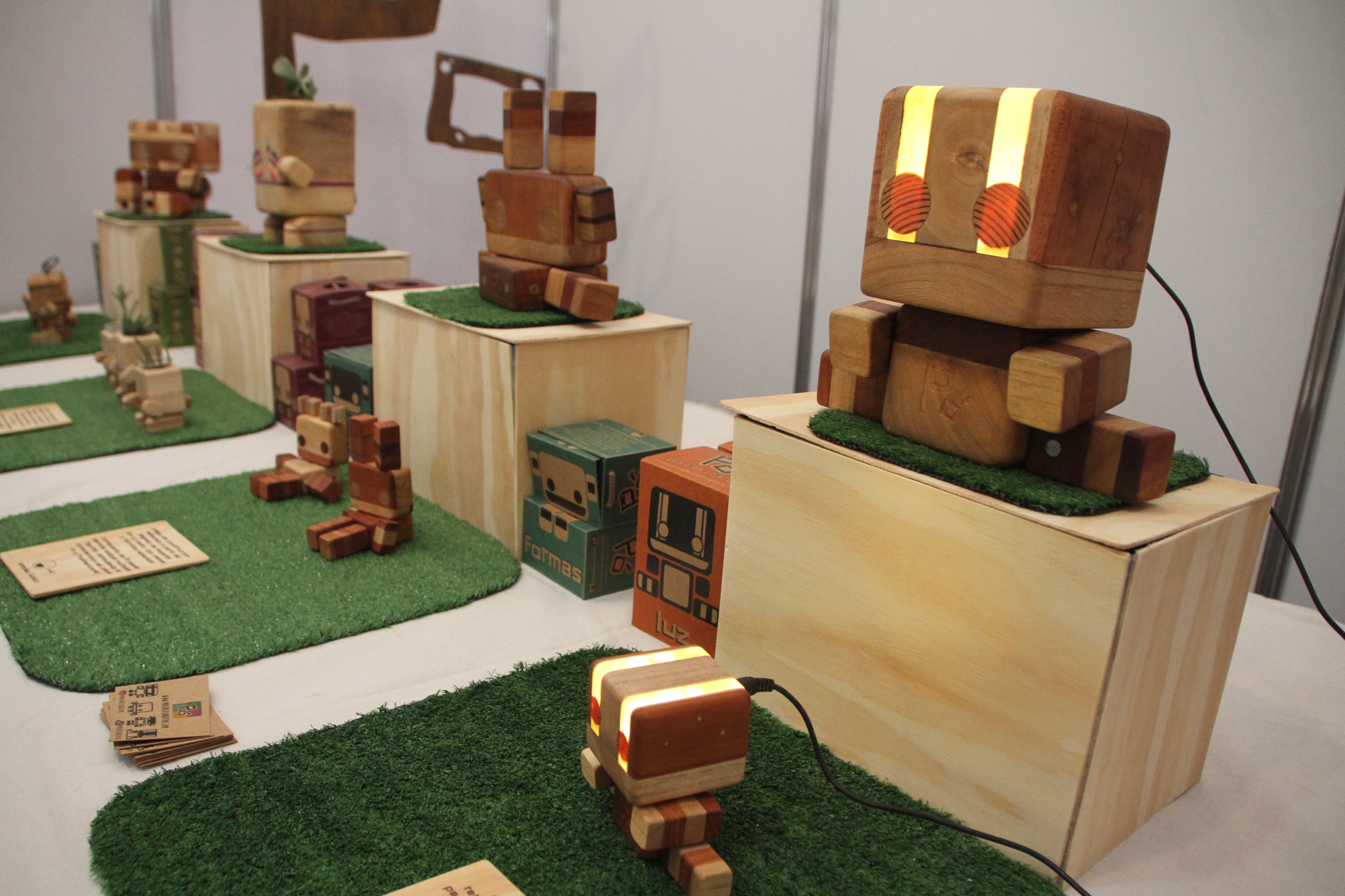 Artesanías PO, de Pola Nelli, presenta sus "posibles objetos". Son cuatro líneas de juguetes fabricados con madera de descarte y reciclado. Cada diseño representa un uso determinado y está vinculado a la etapa de crecimiento del niño. La línea Árbol, un muñeco articulado que ronda entre $350 y $500; la línea Vida consiste en una maceta con penca ($250 y $300), para aprender a cultivar; la línea Forma es más lúdica, con imanes y tornillos para armar diferentes esquemas ($350); y la línea Luz, son veladores para dormitorio a $1.250.