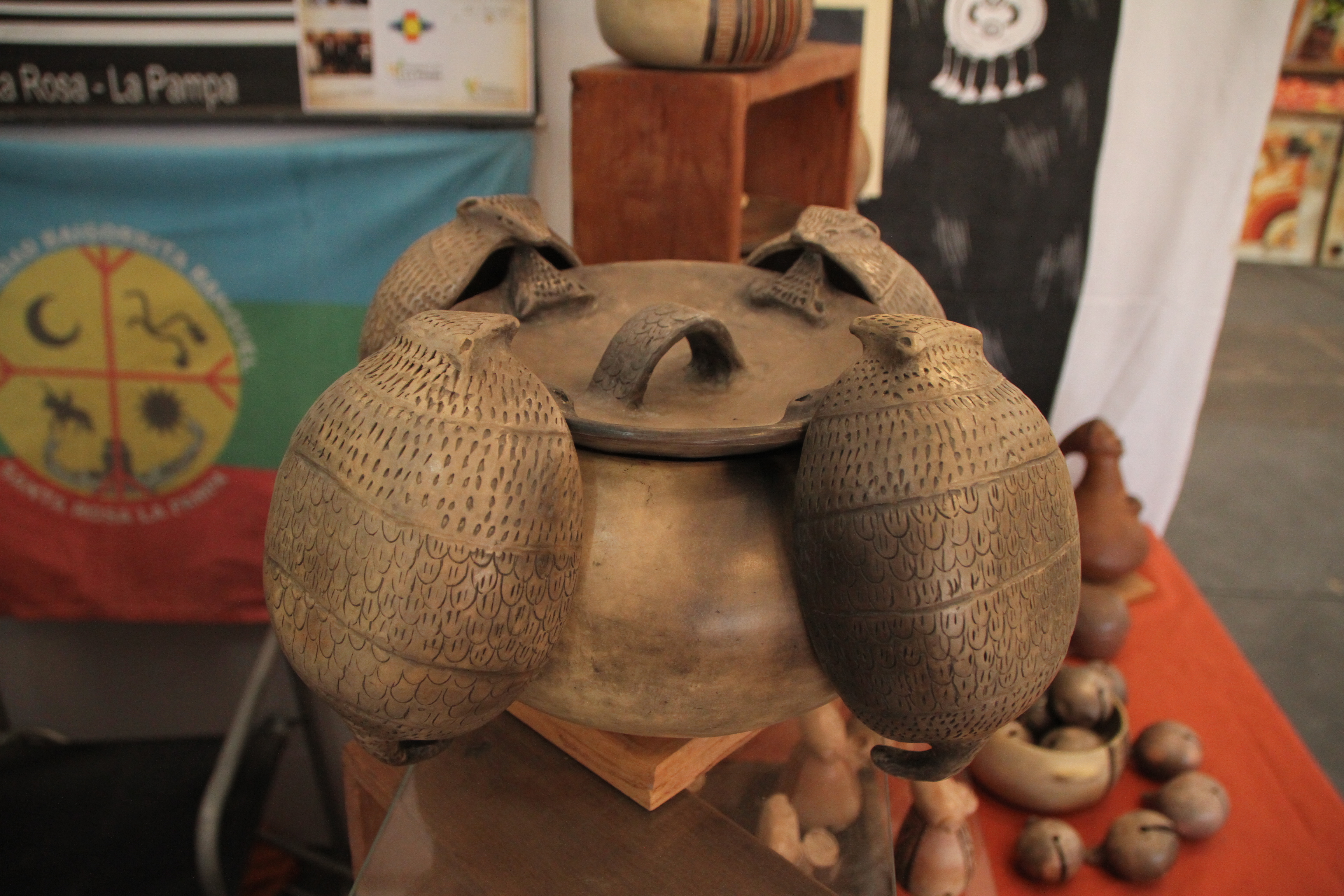 Tierra Ranquel, de Natalia Martínez y Juan Pérez, ceramistas de la comunidad ranquel de Baigorrita, La Pampa. Realizan piezas y diseños con técnicas ancestrales. Buscan la arcilla autóctona de su región, cocinado a leña de la pieza, luego el ahumado y son terminados y curados con cera de vela derretida a baño maría. Elaboración con insumos orgánicos. Mates desde $180; cazuelas $120; ollas $1.800; esculturas $2.000; y la olla comunitaria ranquel $4.500.
