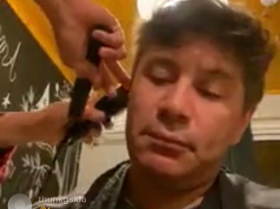 Las horas pasaron y el músico cobró valor para despedirse de su larga y enrulada cabellera, su marca registrada. Según un video que compartió, entre toda su familia pusieron manos a la obra para transformarlo en otra persona.