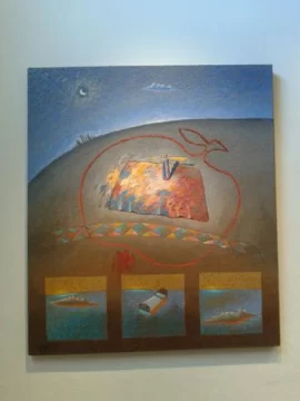 Los suaves colores pasteles de los escenarios de la provincia se plantearon como soporte para que los artistas plasmaran en sus pinceladas ‘diversas reflexiones y meditaciones que hacen a la esencia humana’, planteó Lalanne sobre esta colección de base natural que podrá recorrerse hasta el 12 de mayo próximo.