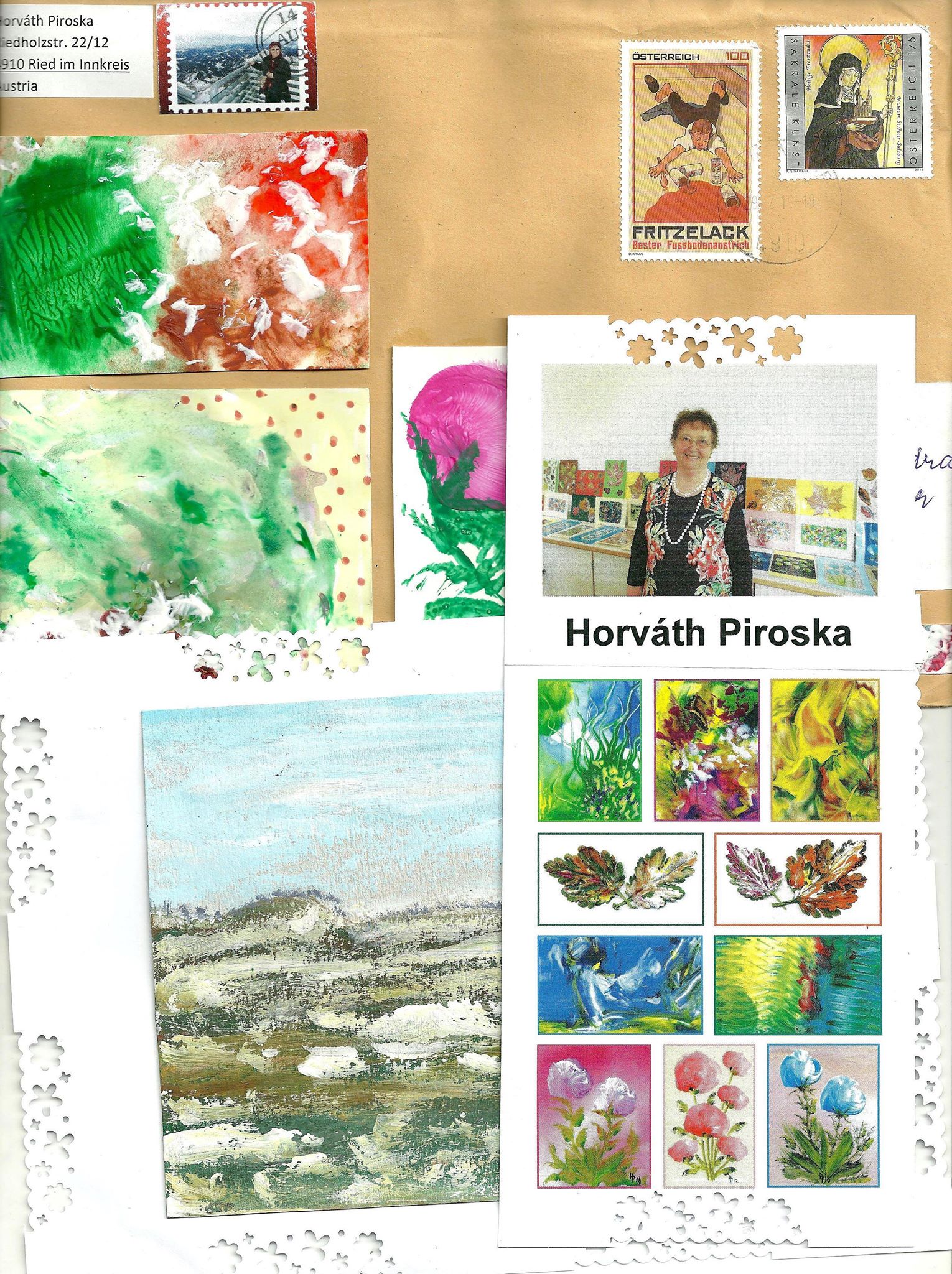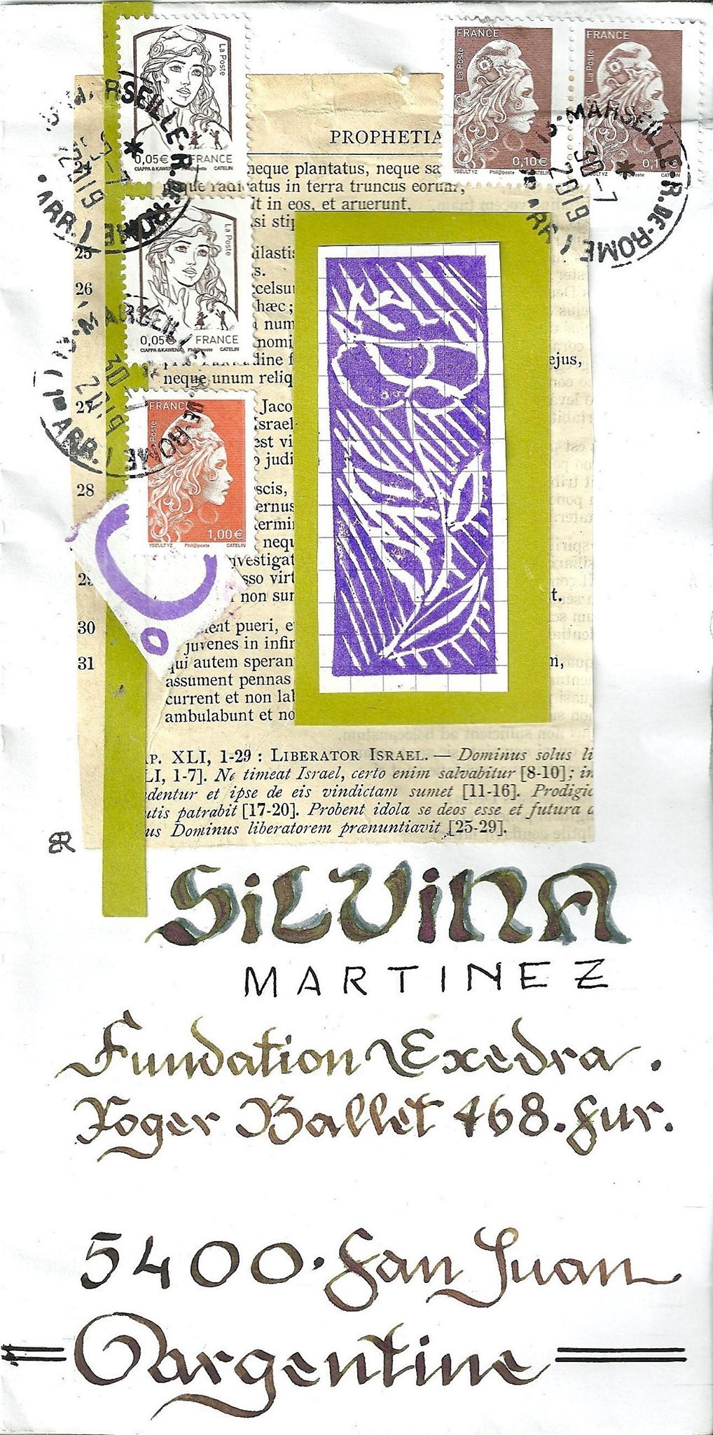 - Uno de los sobres-obra, en ambas caras. De Marie Francois Pringent, Francia.