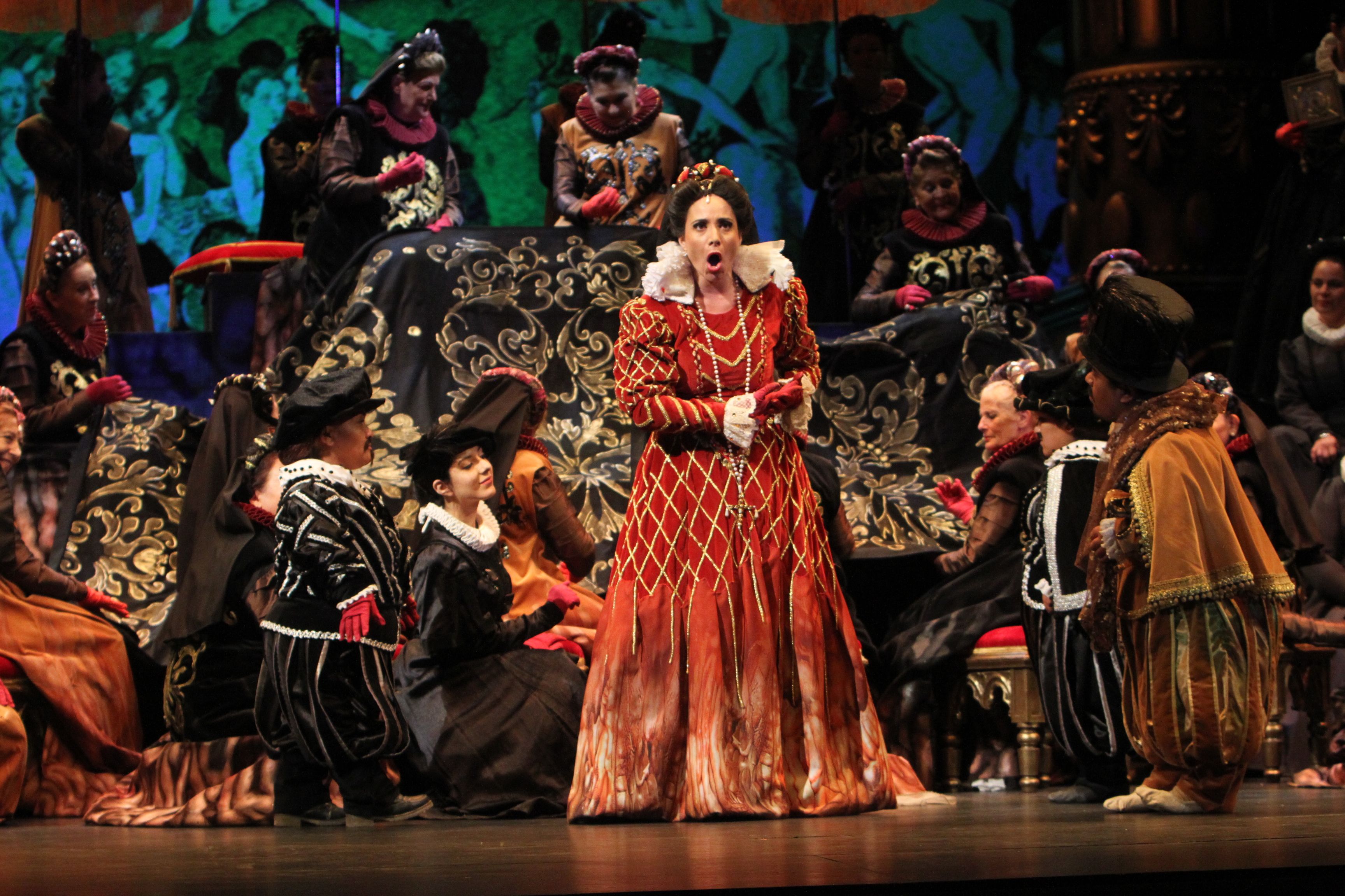 En su versión, Zanetti monta un gran espectáculo, con gran despliegue, usando además algunos recursos que toma prestados del cine, como el uso que hace de las proyecciones, generando un efecto tridimensional que bien vale la pena apreciar. Sumado a la participación del numeroso elenco, entre figurantes y cantantes -incluido el coro-, el constante movimiento humano sobre el escenario y la recurrencia del plato giratorio que permitió cambiar de escenas de manera fluida, el resultado es impactante. Un fastuoso vestuario -también diseñado por Zanetti- refleja el brillo de la época pero también su decadencia, representada en los dibujos presentes en faldas y capas. Y el diseño de iluminación creado por Eli Sirlin aportó los climas necesarios, completando la visión cinematográfica del prestigioso director.