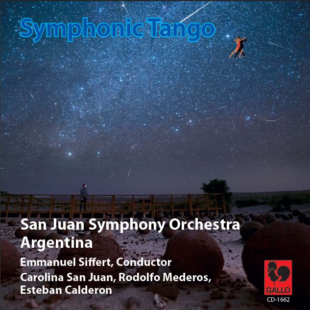 El disco de tangos contiene Adiós Nonino y Tres tangos de Ástor Piazzolla, con Esteban Calderón como bandoneonista invitado; Balada para un loco, con voz de Carolina San Juan y tres de las piezas que tocó, nada menos que, Rodolfo Mederos en su actuación junto a la orquesta sanjuanina, Sur de Aníbal Troilo y de Carlos Gardel Viejo barrio/ Melodía de arrabal y Sus ojos se cerraron. "Estoy muy contento con este lanzamiento, porque además estoy al lado, virtualmente, de Mederos, un maestro del bandoneón. Las obras que hago yo me gustan mucho, la versión de Adiós Nonino es con los arreglos que hizo Piazzolla para el concierto en el Colón(1983) y los Tres tangos es la que hice con la Sinfónica Nacional que dirige mi padre, Pedro Calderón. Celebro la inclusión de Tangotour de Oliva, porque renueva la paleta de obras de tango sinfónico" compartió Calderón. Y justamente hace referencia a que en el disco también incluyeron Tangotour, composición del pianista sanjuanino Tito Oliva. "Es una obra estrenada hace algunos años, pero esta es una versión con arreglos del maestro Siffert es mucho más cuidada, me gusta como la ha trabajado el director, mi rol aquí es de compositor" dijo Oliva sobre la pieza y a la vez que destacó la importancia de que "la Sinfónica se difunda en otros territorios" como así también "el hecho de incorporar compositores locales, es una manera de proyectar los contenidos culturales que generamos en la provincia a otros ámbitos y eso tiene repercusión", aseguró.
