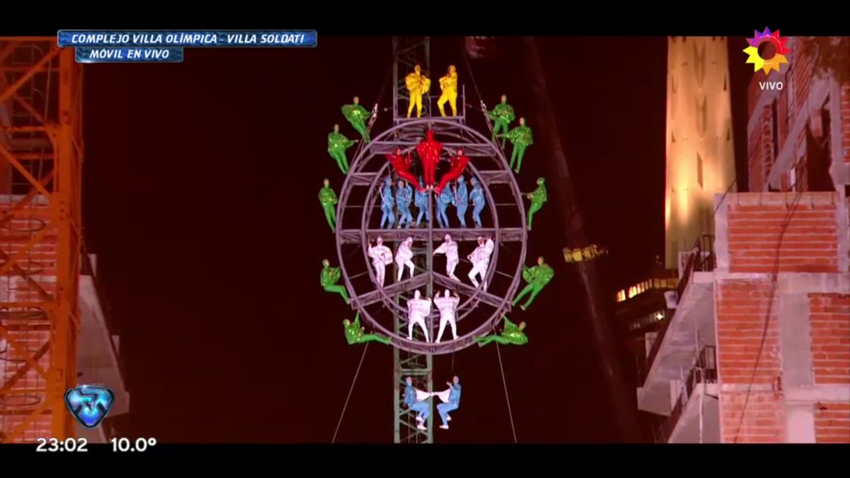 Gran parte de las comparsas concluyeron en el estudio para darle la bienvenida a Tinelli, quien finalmente salió al aire siendo las 23.13. "¡¡¡¡Buenas noches, América…!!!!", gritó el conductor, con una canción de Lali Espósito de cortina.