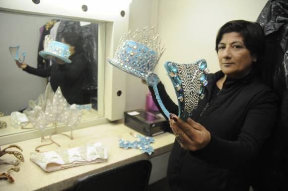 Hace muchos años que a San Juan no llegaba una obra del teatro de revista. Y mucho menos con las características de Bravísima, la fuerte apuesta de Carmen Barbieri que el jueves pasado arribó a la provincia de la mano de Fundación Protea y que deleitó al público con su gran despliegue de glamour, vestuario y utilería, todo un sello de este género teatral. Sin embargo, debajo de las tablas, allí donde los aplausos apenas se sienten y el ojo del espectador no llega, hay otro mundo tan atrapante y curioso como ese. A horas del debut de la revista, DIARIO DE CUYO recorrió los camarines del Teatro Sarmiento, colmados de plumas, brillos, zapatos… y por supuesto los famosos concheros. Como era de esperar, para Carmen Barbieri se destinó el camarín más grande, bien iluminado, donde Sara -la vestuarista a cargo- ya había dispuesto los maquillajes, accesorios y trajes que usaría la diva a lo largo de la obra, con 8 cambios de vestuario. Pero también estaban sobre la mesa varias estampitas con distintas advocaciones de la Virgen María y hasta algunas imágenes pequeñas de santos.