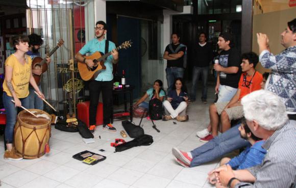 El fresco aire que ingresaba por la entrada de la galería comercial (ubicada por calle Rivadavia, antes de Catamarca, en la puerta de una conocida peluquería céntrica), fue un efecto ambiental ideal que encajó perfectamente con el clima de amistad generada por los ‘repartidores’ del ‘Delivery’ de canciones. Fue la última entrega que hizo el músico sanjuanino Fabricio Montilla, en compañía de Mariú y Fabricio Pérez. El trío invitó al público a participar espontáneamente con un repertorio extendido por casi 45 minutos (el doble de lo habitual). Niños, jóvenes y adultos disfrutaron sentados en el piso o con un banquito, de esta original propuesta artística que llegó a su final de ciclo. ‘Fue una feliz despedida, amigos y mucho público se acercaron a vivir la experiencia con nosotros. Confieso que me invadieron un montón de emociones, pero me despido con la certeza de que han sido 3 años maravillosos y que todo lo que hemos sembrado, ha dado sus frutos. Ahora es tiempo de disfrutar y seguir sembrando’, expresó un Montilla, emocionado.