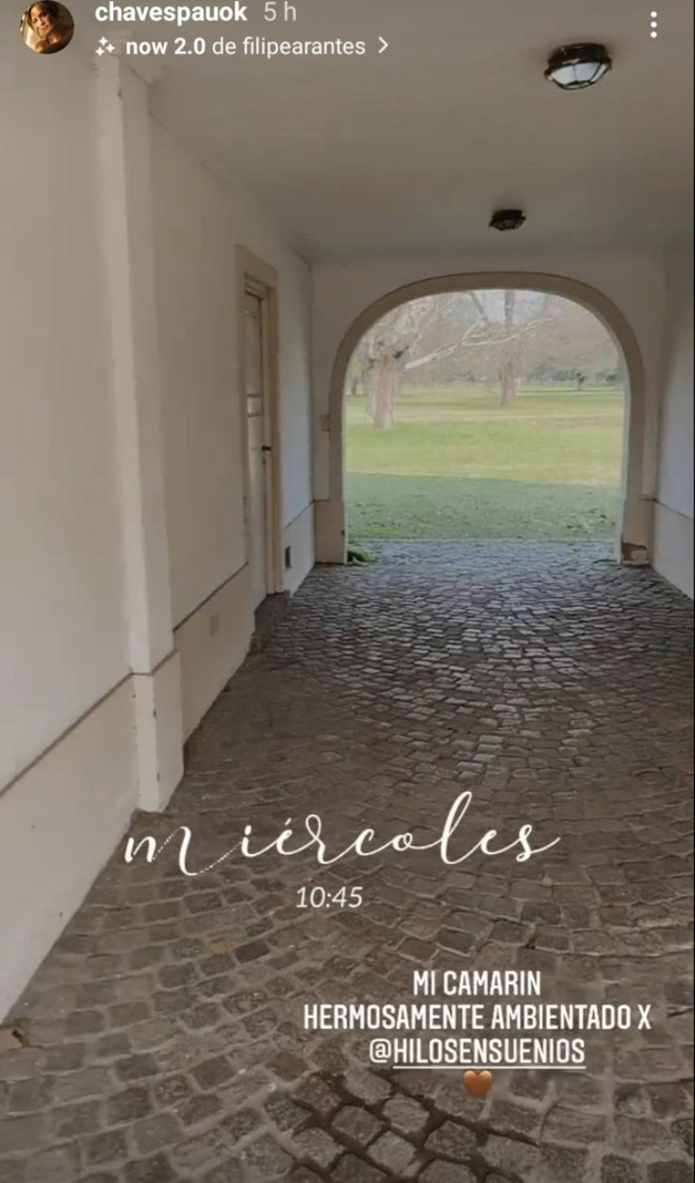 Una puerta de madera blanca con el cartelito de "Camarín Paula Cháves" indica la entrada un espacio hermoso, donde priman los colores pastel y un clima cálido, similar al de una casa de campo. "Mi camarín hermosamente ambientado", escribió Paula en su Instagram y compartió distintos videos y fotos donde se ve la intimidad del lugar donde se prepara y también descansa en los breaks de las grabaciones.