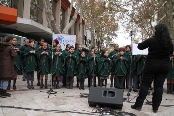 El II Festival Canción con Todos llega a su fin esta noche, pero ayer, luego de varios días consecutivos con intensas funciones en diferentes puntos de la provincia, los coros participantes dieron una magnífica demostración en el Cruce de las Peatonales. A pesar del frío y la lluvia, el público disfrutó con entusiasmo de los repertorios brindados por el Coro Jorge L. Borges, el Preparatorio de la UNSJ, Armonías del Sol, Nuestra Señora del Tulum, Sueñeros, el Coro Inti Zaha y el Coro Beruti, entre otros; que también estarán presentes esta tarde, a partir de las 17.30, en el gran cierre del festival, que será en el Estadio Aldo Cantoni con entrada libre y gratuita. Habrá actuaciones individuales de cada coro, como Andares, Niños y Jóvenes de la FFHyA, el Municipal de Rawson, Colegio María Auxiliadora, Municipal Villicum, Voces del Este y muchas más en una nómina de más de 15 agrupaciones. En el acto final, todos juntos -más de mil voces- interpretarán ‘Canción con todos’ de César Isella.