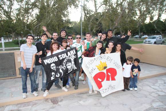"Un recital del Indio, es un fenómeno sociocultural y a la vez es como un festejo de cumpleaños de todos nosotros’, definición auténtica y contundente que salió de la boca de Hugo Andino, un fan de acero que, junto a un grupo de amigos, viajó metido en la gran caravana que salió ayer desde la Terminal de Ómnibus de San Juan. Desde el 2001 sigue al Indio a todos los recitales y recordó cómo vivió lo de Mendoza: "Salimos en convoy con un Renault 12 y un Ford Fiesta. Llegando al control de San Carlos se nos detuvo un coche, nos fuimos sin entradas, las chicas hacían dedo a los camioneros. Nos reencontramos en la Terminal de la ciudad, después había que llegar caminando hacia San Martín con tanta lluvia. Unos 15 km de cola en la ruta, pero el aura de Dios Patricio quiso que llegáramos sobre la hora’.