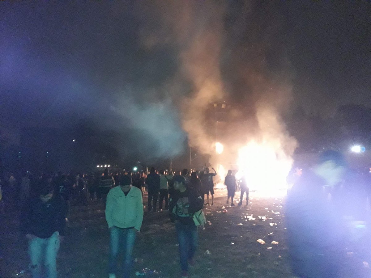 A las 5 de la mañana, en medio del descontrol, el Pity salió a calmar a su fans, pero ya era tarde. Mientras ardía una torre de sonido, el cantante les informó, después de 10 horas, que el show se había suspendido sin explicar el motivo. En ese momento, el público reaccionó con furia: le tiraron piedras y botellas al cantante, que se tuvo que proteger detrás del escenario.