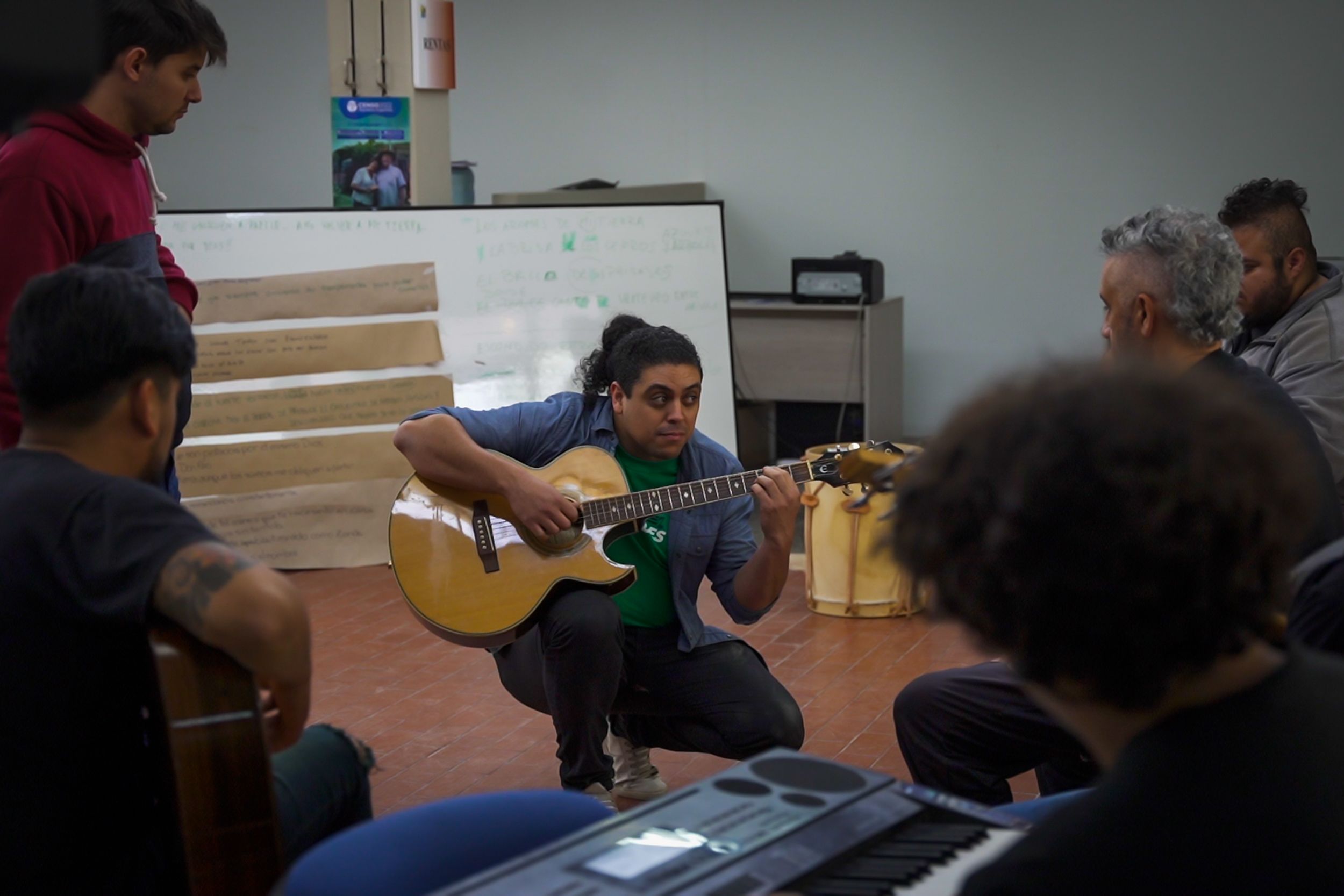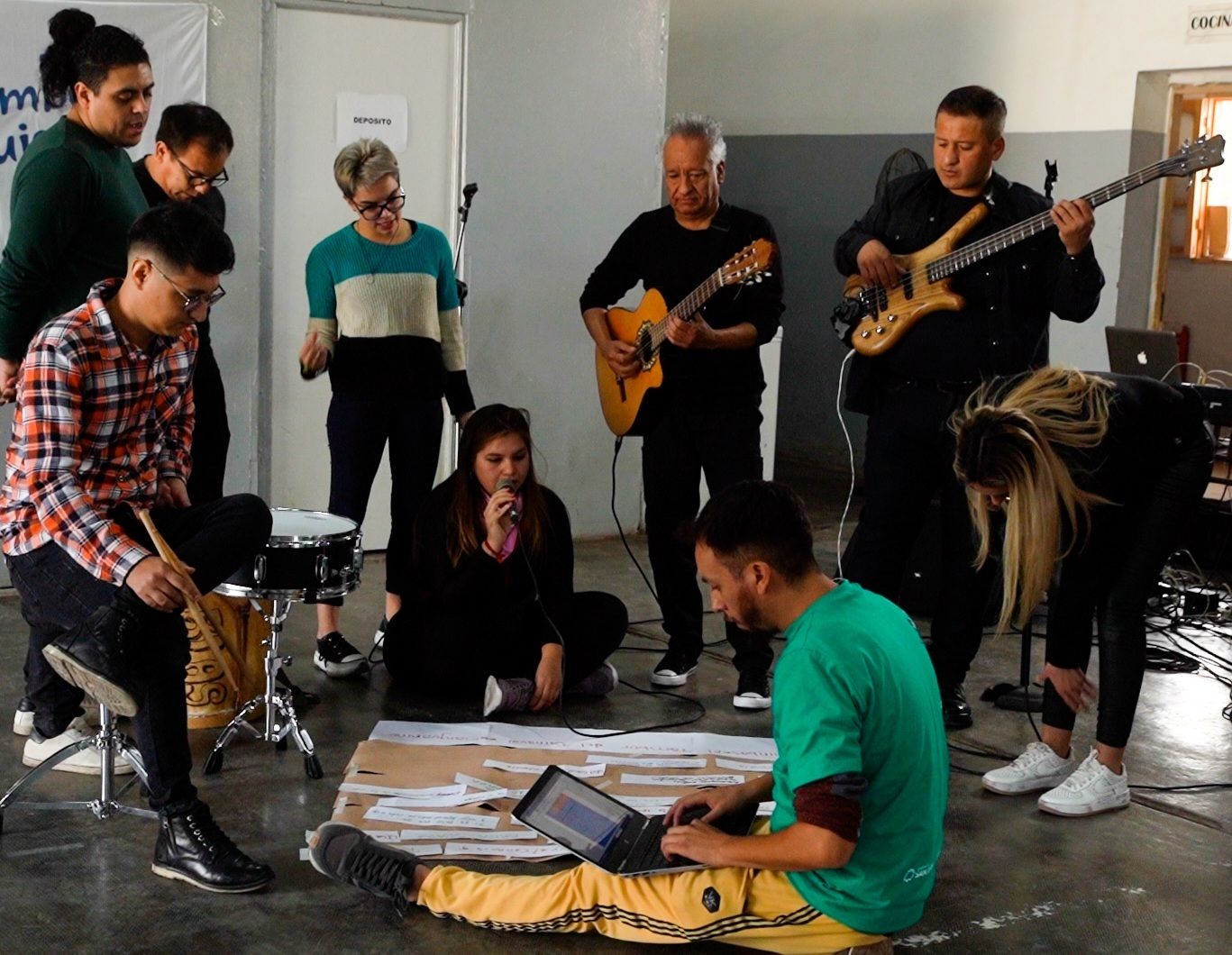Chimbas. En el proceso de composición, músicos y cantantes definiendo la letra.