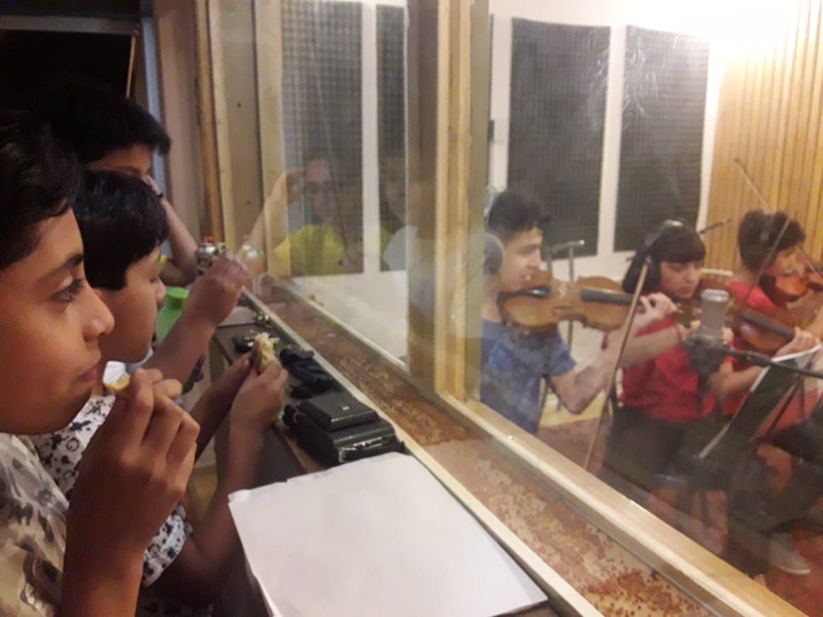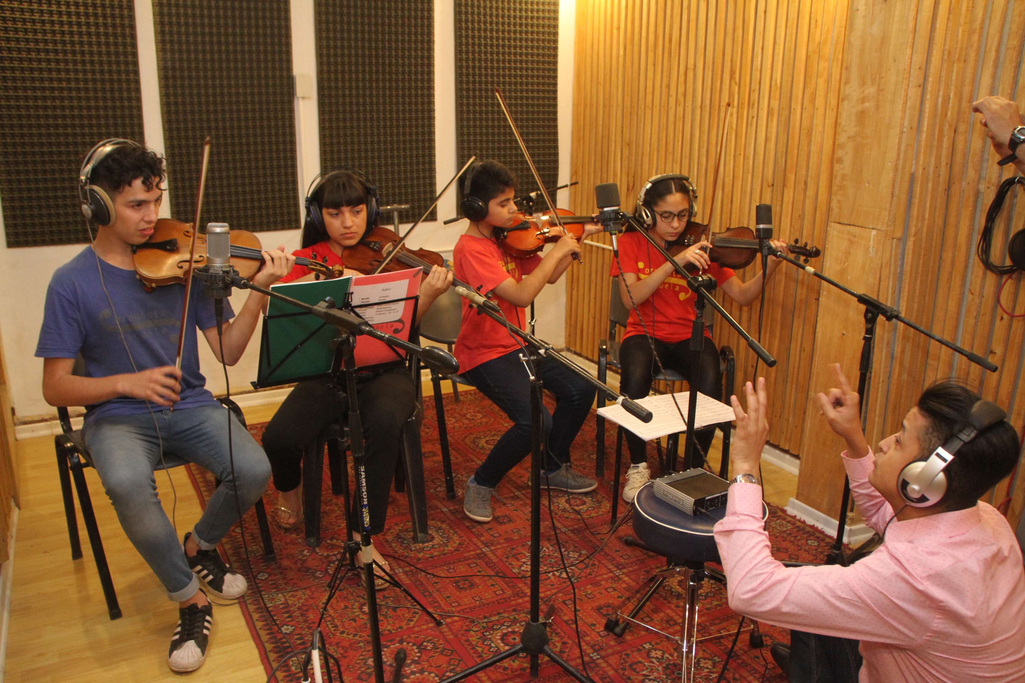 El viernes, un grupo de la Orquesta Escuela ingresó al estudio de grabación de Lucio Flores, para grabar su pista. Emocionados con la experiencia, llegaron puntuales y durante la previa, alternaron entre charlas y práctica. Finalmente, luego de algunas pruebas, comenzó la grabación. Mientras unos tocaban en la salita junto al maestro Hidelmaro Villarreal -que conduce el proyecto-, el resto esperaba en una habitación contigua. Disfrutando de unas empanaditas, observaban a través de una ventana sellada el trabajo de sus compañeros y tomaban nota, en un encantador clima de camaradería donde no faltaron la ansiedad ni el juego. "Es una experiencia linda, porque es de las primeras, así que estamos todos un poquito nerviosos’ confesaba Fabricio, mientras al rato otros soltaban un "¡Shhh, cállense, que empiezan a grabar!’, respetando ese "templo’ como buenos músicos.