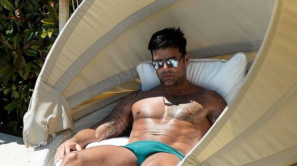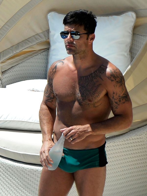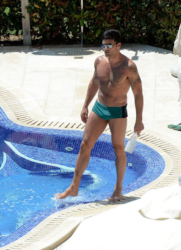 El intérprete "Vente pa’ca" fue retratado bronceándose en la piscina de su hotel en Mallorca. En la serie fotográfica se lo puede ver luciendo un pequeño traje de baño que deja al descubierto su espectacular y trabajado cuerpo.