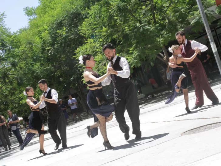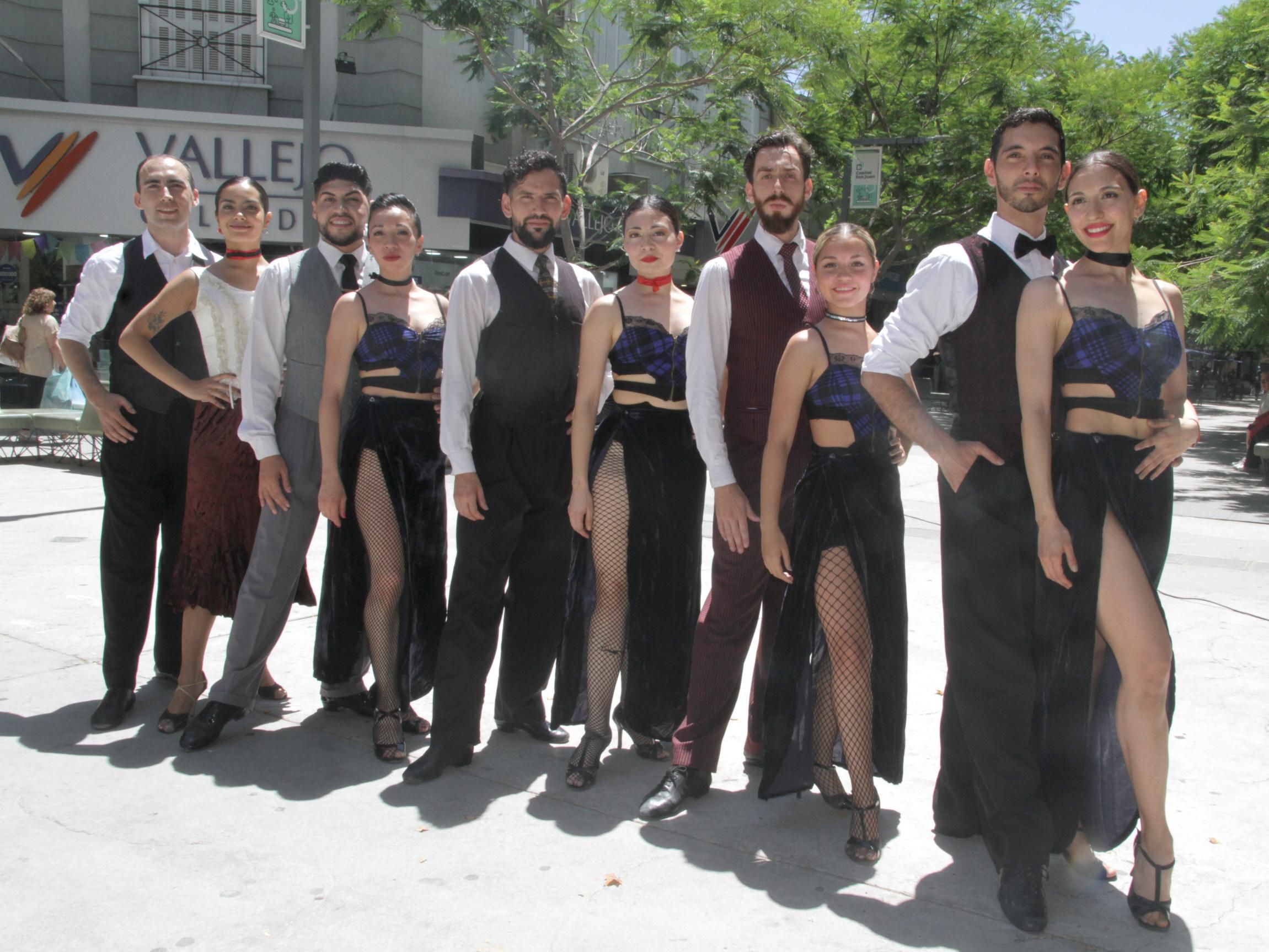 La tranquila mañana del microcentro sanjuanino, más precisamente en el cruce de las peatonales Rivadavia y Tucumán, se vio alterada en un breve lapso, por la irrupción de unas cinco parejas que lucían elegantes trajes para dar a tono con la promoción del Festival Tango San Juan, que comenzará el próximo 7 de diciembre. De la mano del ballet Proyecto Tango San Juan, conducidos por Rafael Lloret, dieron una demostración de sus habilidades del tango de escenario con una intervención urbana el cual despertó la curiosidad de numerosos adultos, jóvenes y niños que circulaban por el lugar.