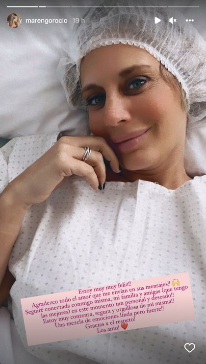 “Estoy muy feliz. Agradezco todo el amor que me envían con sus mensajes. Seguiré conectada conmigo misma, mi familia y amigas (que tengo las mejores) en este momento personal y deseado”, escribió Rocío Marengo.