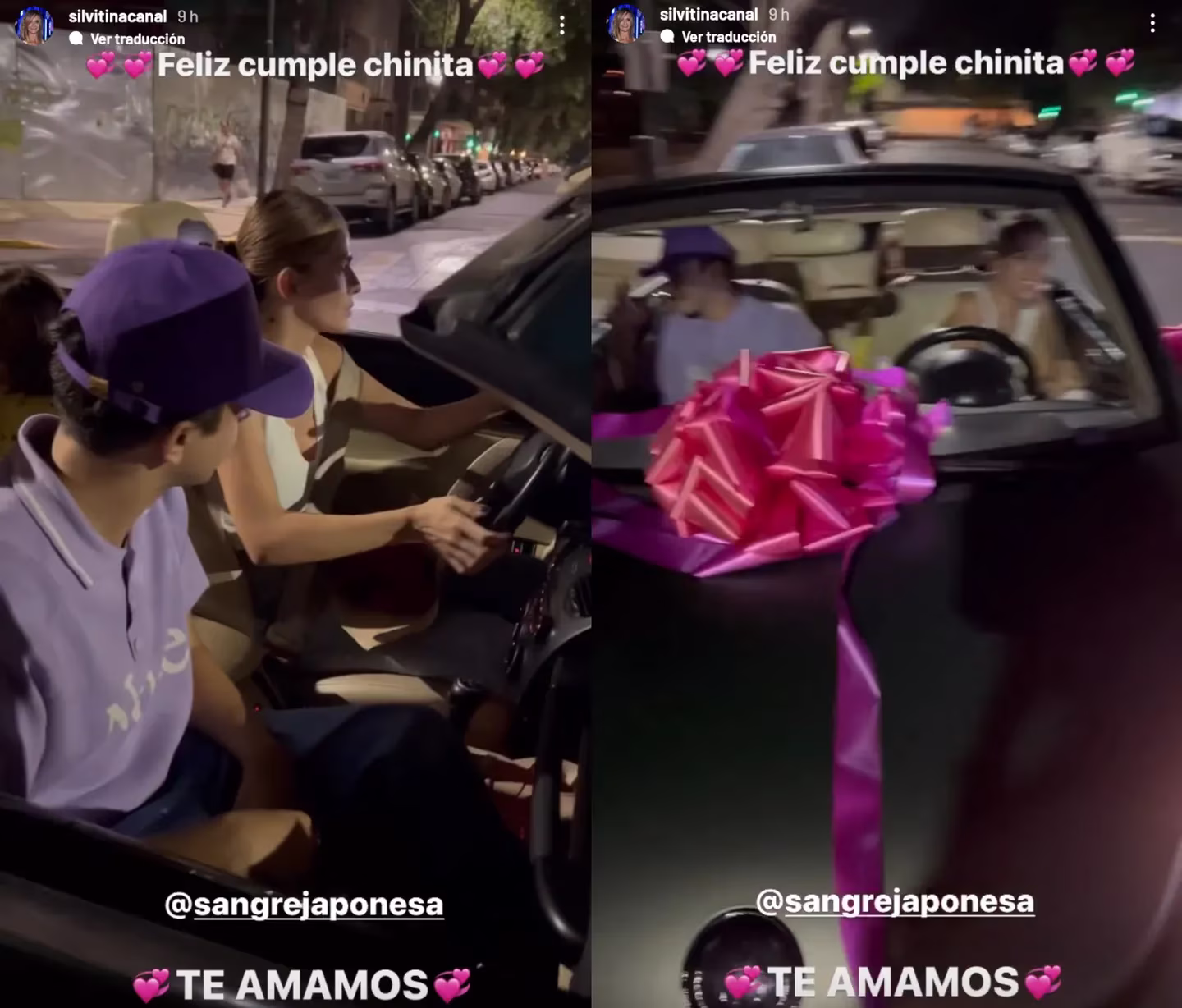 “¡Feliz cumple Chinita, te amamos!”, dice el video de Instagram en el que se la ve a la ex Casi Ángeles con una gran alegría arriba de un Volkswagen New Beetle, modelo 2006 y de color negro. En su interior, la acompañaron su hija Rufina, y el intérprete de “Perfecta”.